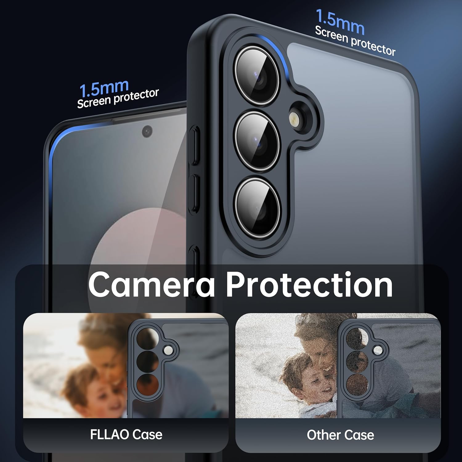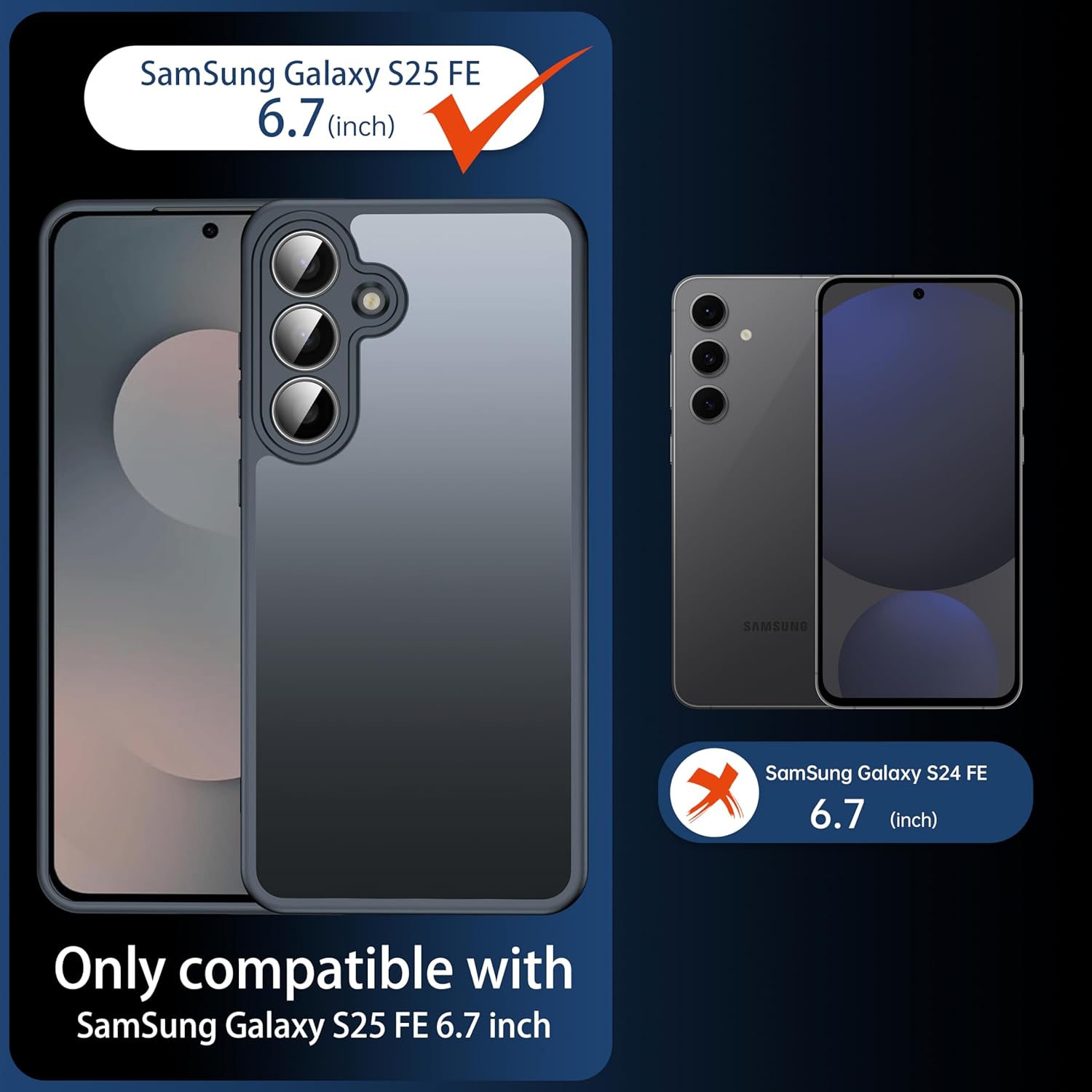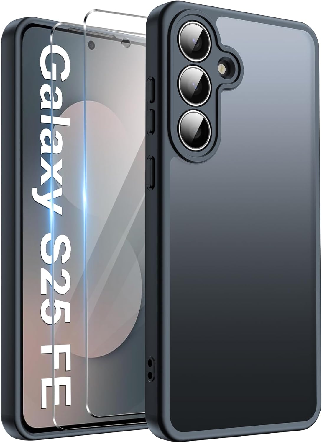 Матов калъф за мобилен телефон FLLAO за Samsung Galaxy S25 FE и 2 протектора за екран, със защита на камерата, защита по военен стандарт, удароустойчив PC гръб TPU bumper калъф за Samsung Galaxy S25 FE