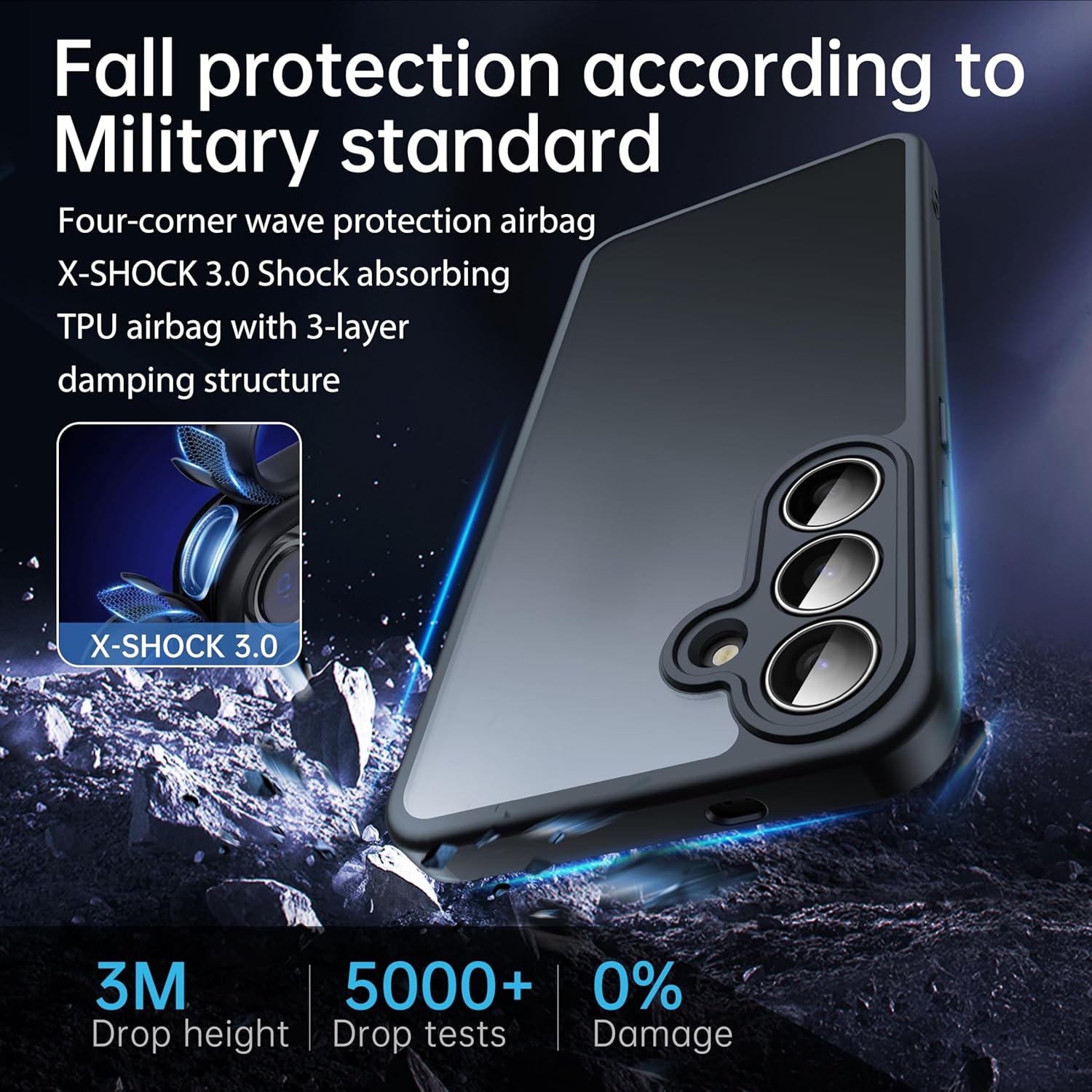 • [Военна защита] Калъфът за мобилен телефон за Samsung Galaxy A16 5G използва професионална технология за абсорбиране на удари X-SHOCK 3.0, 4-слойна TPU броня за създаване на ефективна технология за устойчивост на удар. След сертифициране и практически тестове, той може да издържи на падане от височина до 3 м. Защитно фолио с твърдост 9H предпазва екрана от различни надрасквания. Цялостна и ефикасна военна защита за вашия мобилен телефон.