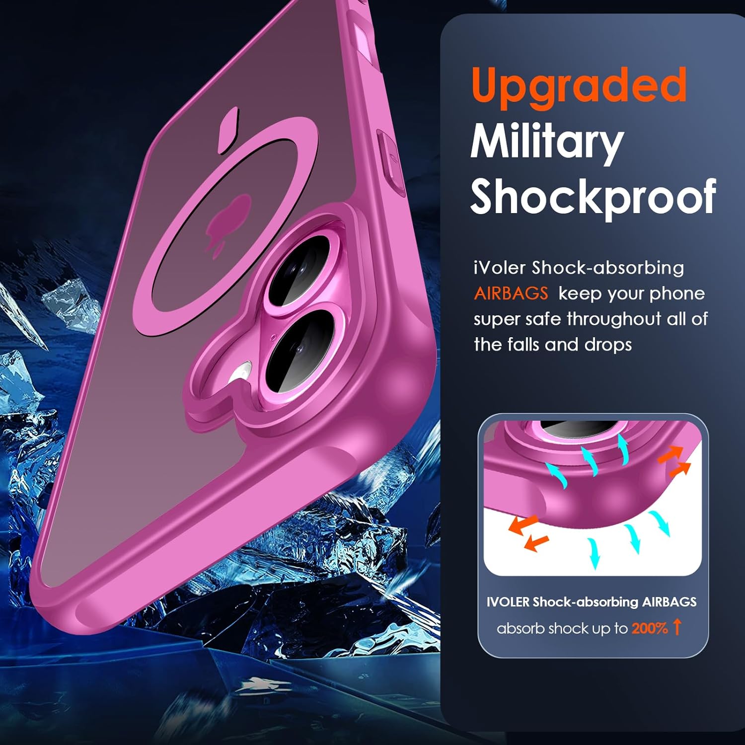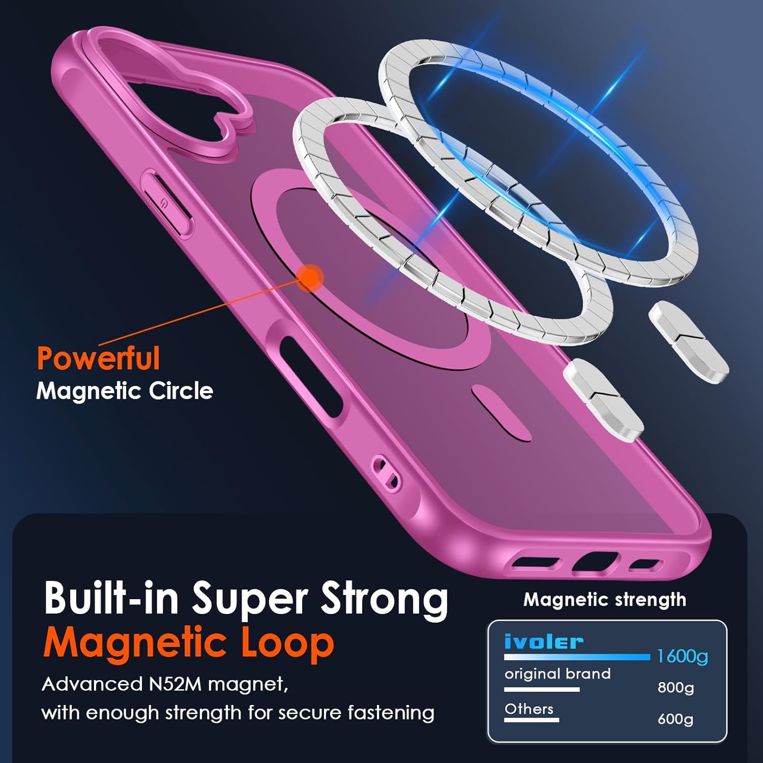 Матов магнитен калъф ivoler за iPhone 16 Plus, съвместим с MagSafe, защита от падане по военен стандарт, удароустойчив, устойчив на надраскване гръб, защитен калъф, тънък, течен силиконов калъф за мобилен телефон.