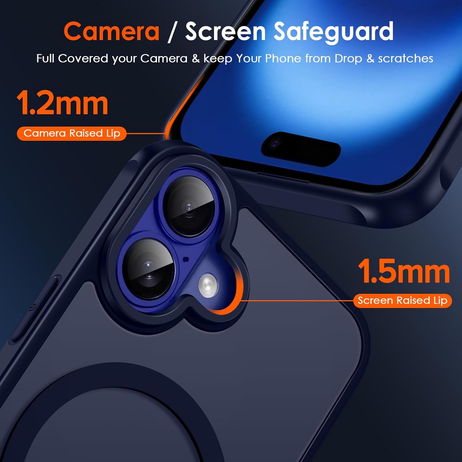 • [Повишена защита на камерата и екрана] --- Камерата и екранът са двете най-скъпи и крехки части на целия телефон. Дизайнът с пълно покритие на камерата предпазва цялата камера от надраскване. Повдигнатите ръбове около предния екран и обектива на камерата могат ефективно да се справят с последиците от внезапно изпускане или удар, без да надраскат красивия ви телефон!