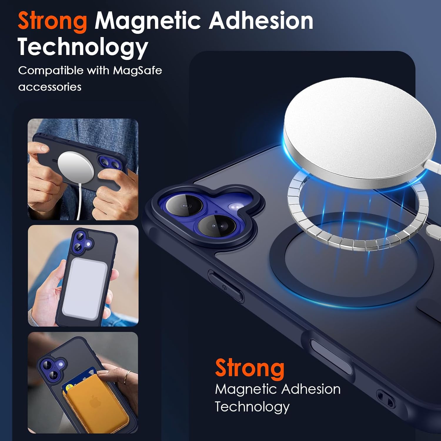 • Силна магнитна адсорбция: ексклузивният, патентован магнит Halbach, който е два пъти по-силен от официалния магнитен калъф-яйце. Този магнитен калъф е съвместим с всички Qi сертифицирани магнитни зарядни устройства, магнитни портфейли и държачи за кола. С вградени магнити, които се подравняват перфектно с iPhone, калъфът се държи лесно и осигурява по-бързо безжично зареждане.