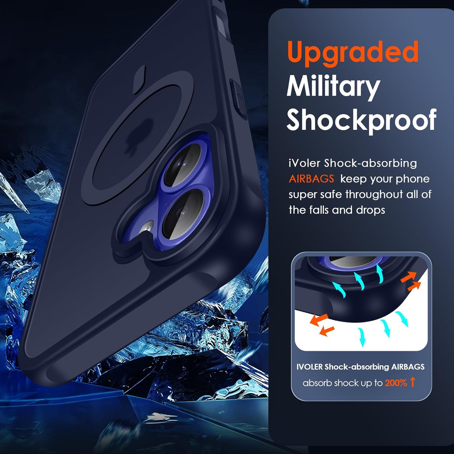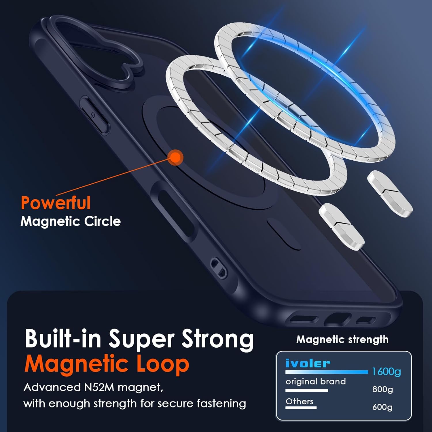 • Силна магнитна адсорбция: ексклузивният, патентован магнит Halbach, който е два пъти по-силен от официалния магнитен калъф-яйце. Този магнитен калъф е съвместим с всички Qi сертифицирани магнитни зарядни устройства, магнитни портфейли и държачи за кола. С вградени магнити, които се подравняват перфектно с iPhone, калъфът се държи лесно и осигурява по-бързо безжично зареждане.