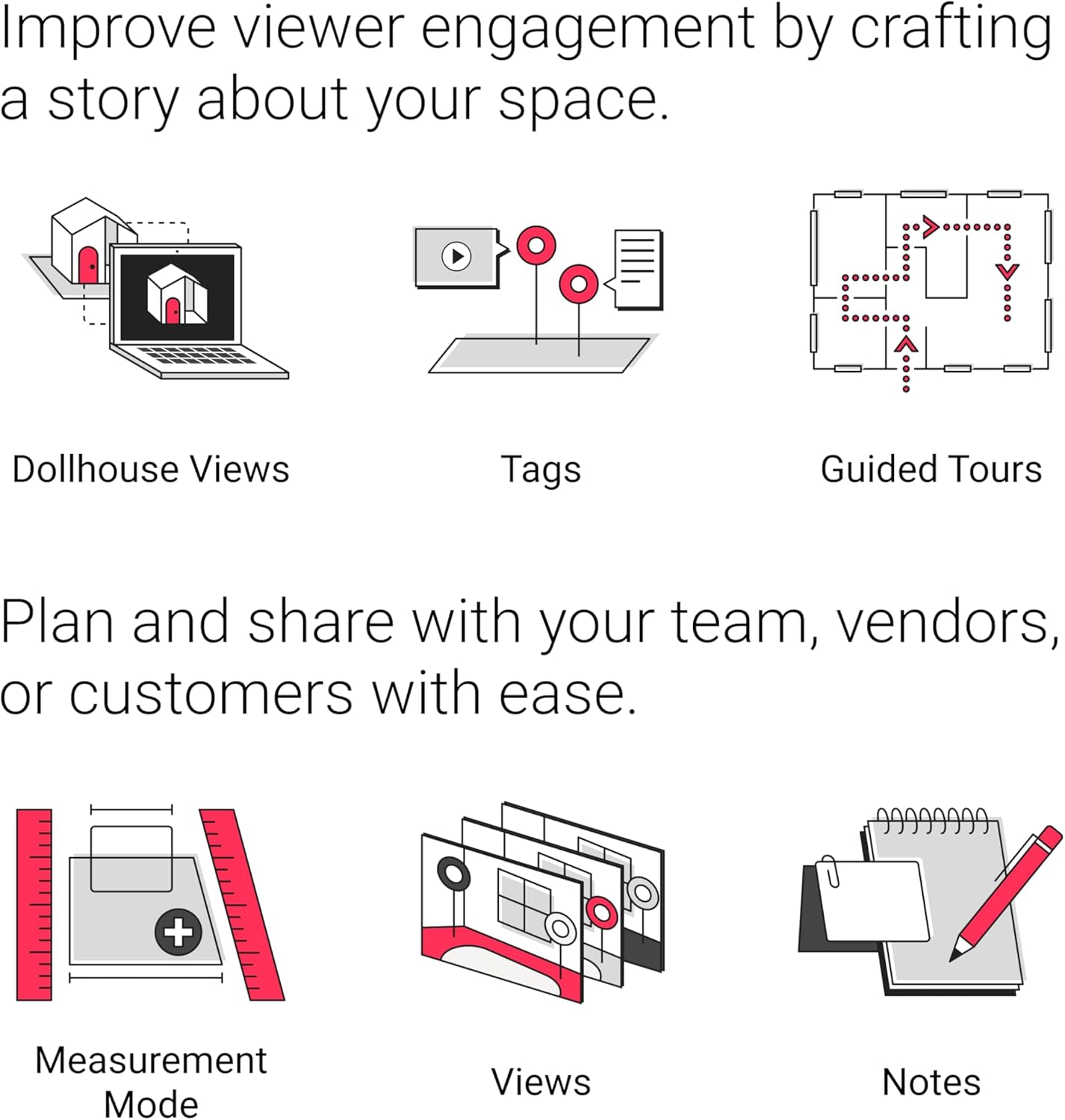 • ОТКЛЮЧЕТЕ ПРЕМИУМ ФУНКЦИИ С MATTERPORT - Pro3 работи най-добре с Matterport Pro или Business Plan, като използвате приложението Matterport Capture за вашето iOS или Android устройство, за да научите повече и да започнете да творите още днес.