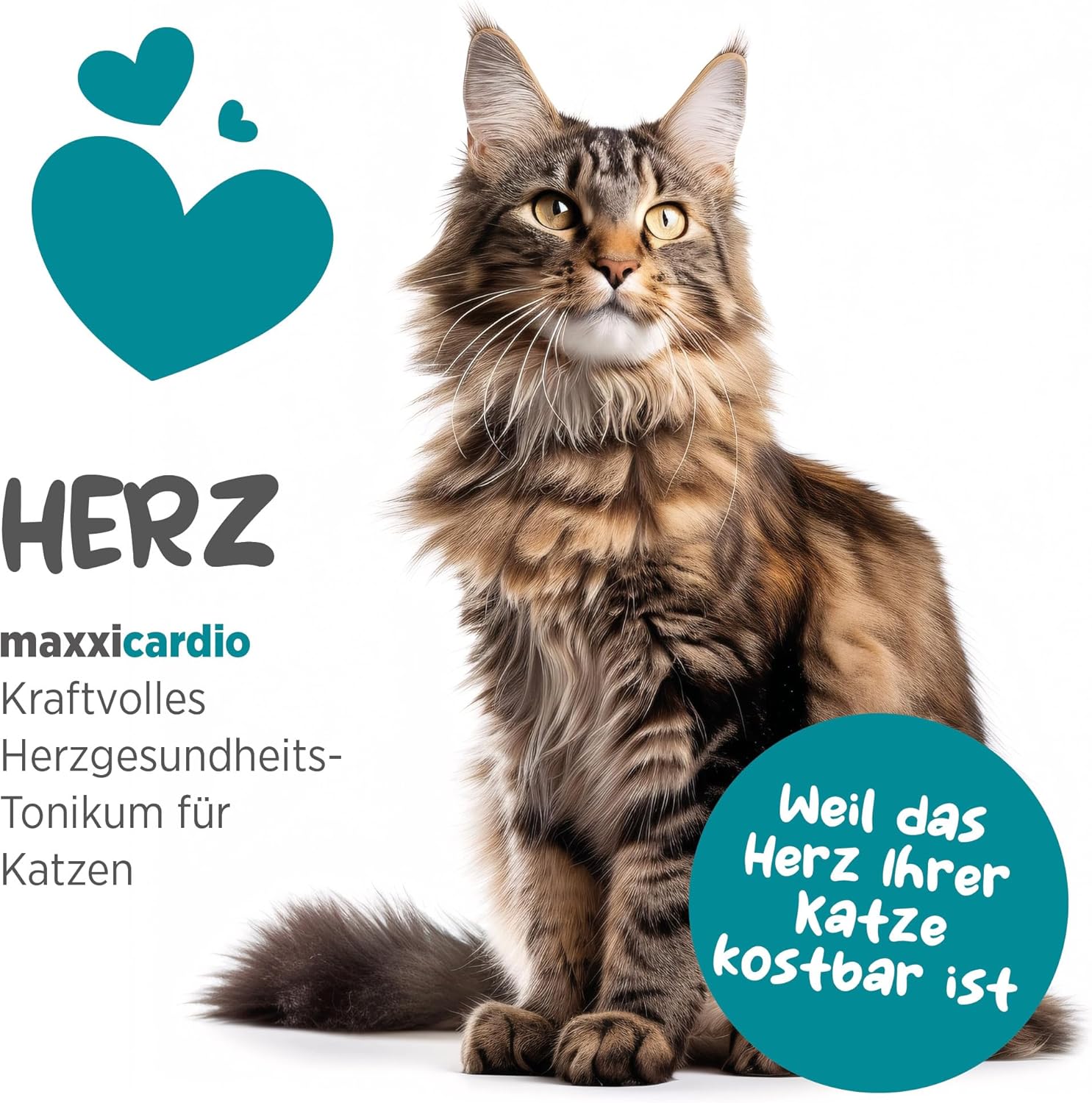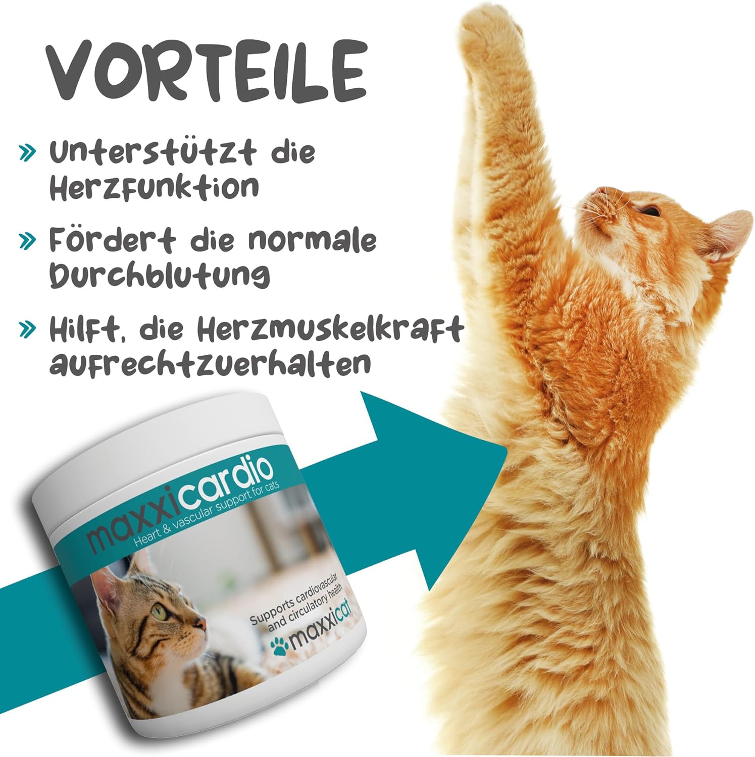 • СЪРДЕЧНО-СЪДОВА ПОДКРЕПА: maxxicardio може да подпомогне сърдечната функция на котките, като насърчава нормалното кръвообращение и допринася за поддържането на силата на сърдечния мускул и здравето на тъканите.