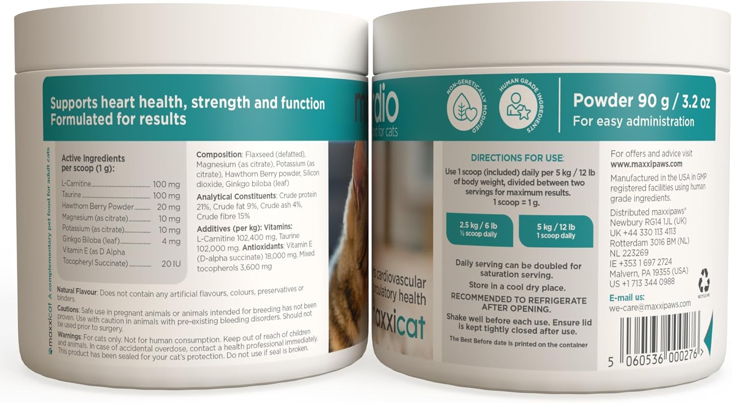 maxxipaws maxxicardio Допълнителна храна за сърце и кръвообращение на прах за котки, 90 г