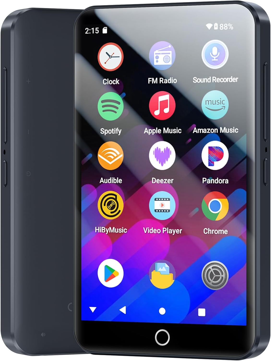MECHEN MP3 плейър Spotify с WiFi Bluetooth, 4-инчов сензорен екран, Android 13 MP4 плейър, съвместим с Audible, FM радио, Amazon Music, Deezer, Pandora, Play Store (96GB)