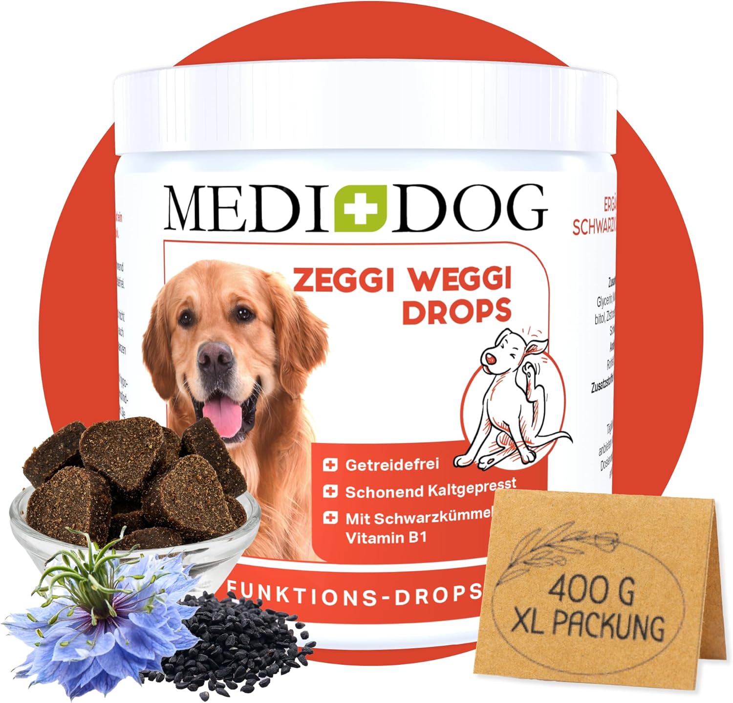 MEDIDOG Zeggi Weggi Premium Drops – 400 г – масло от черен кимион, алпийска роза, кокосово масло, хипоалергенни