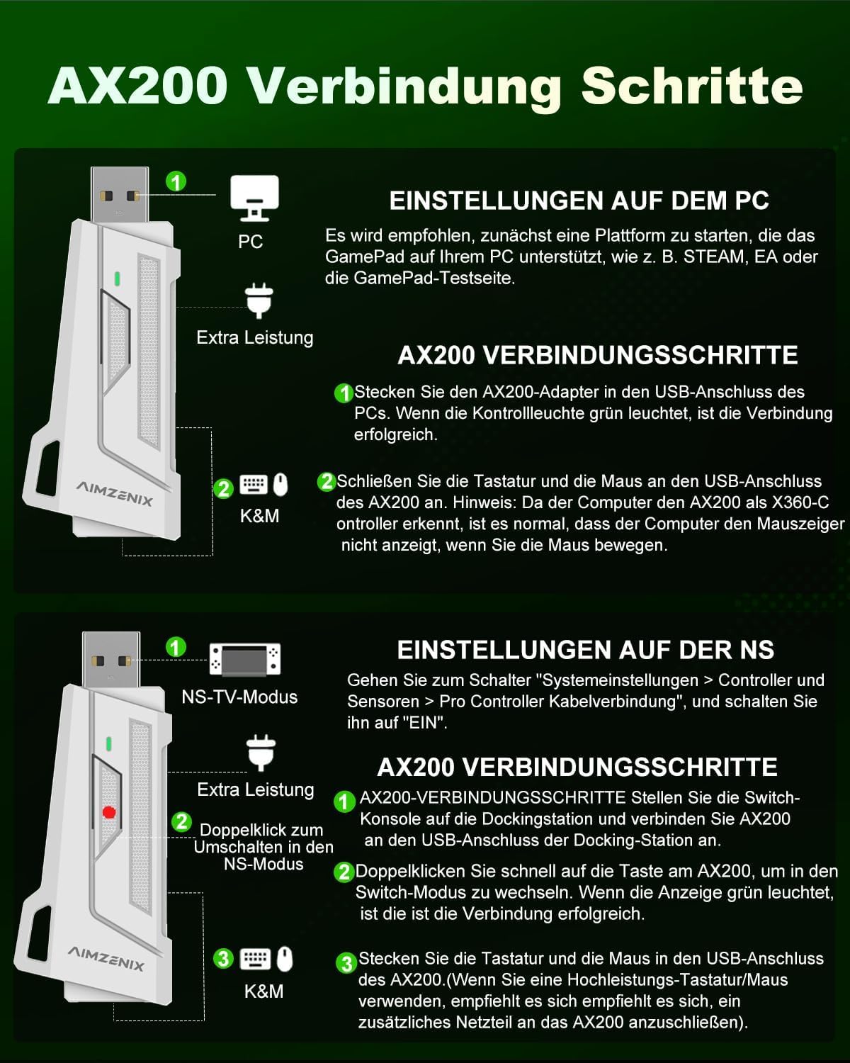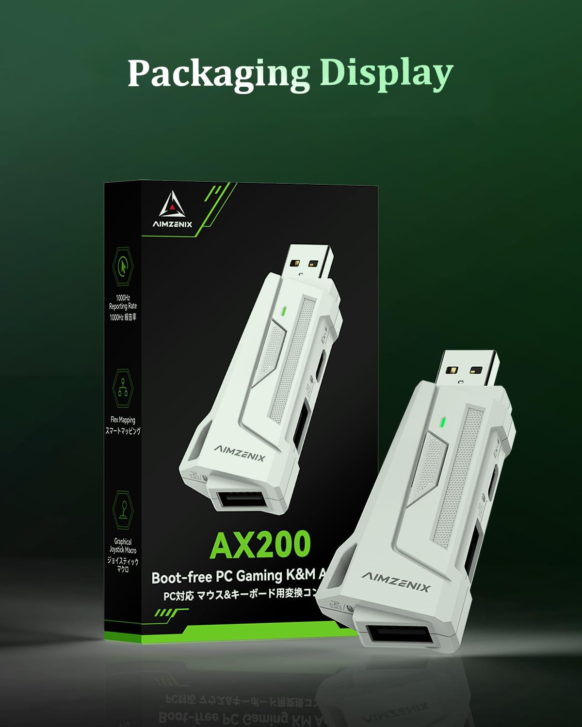 • Подходящ за Nintendo Switch: AX200 поддържа връзка с NS чрез OTG адаптер. Просто трябва да щракнете двукратно върху бутона на AX200, за да превключите веднага в NS режим, или можете да го поставите в NS режим чрез приложението.