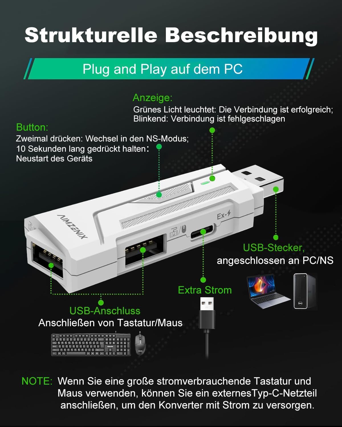 • ❗NOTE❗: This converter does not support wireless mouse and wireless keyboard. If the mouse device is over power, you need to provide extra power to the adapter to allow the mouse and keyboard to be used properly, once connected to a computer, you can use it immediately without complicated settings, this hassle-free connection ensures a smooth and enjoyable gaming experience.