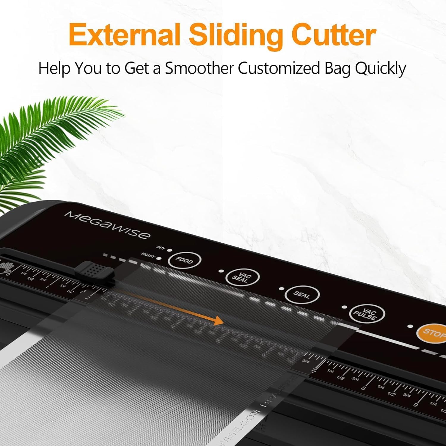 • МИНИ РАЗМЕР С МНОГОФУНКЦИИ Този вакуумен уред е компактен (15,2 x 4,1 x 2,3 инча) и лек (2,2 паунда), което добавя красота и стил към вашата кухня. С външната вакуумна система можете лесно да вакуумирате чаши, контейнери и бутилки вино. Можете също да използвате плъзгащия се нож, за да получите бързо по-гладка торбичка с персонализиран размер.