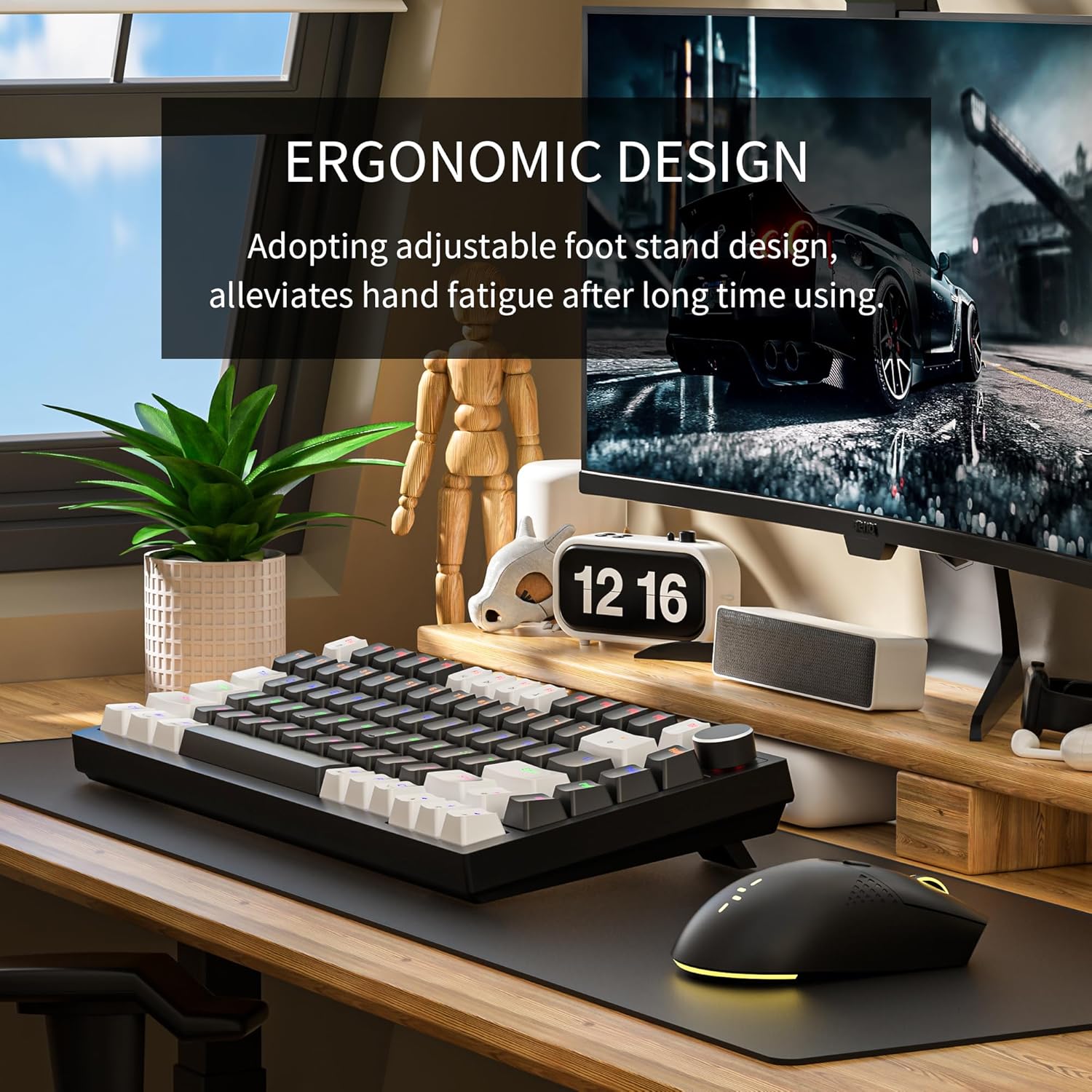 Механичната геймърска клавиатура е ергономично проектирана и оборудвана с двустепенна регулируема стойка, която може да се регулира на различна височина, според нуждите, така че да не се уморявате бързо дори при продължително натискане на бутона. Тази клавиатура TKL е с функция anti-ghosting, която позволява едновременно натискане на няколко клавиша, за да се насладите на върховно гейминг изживяване.