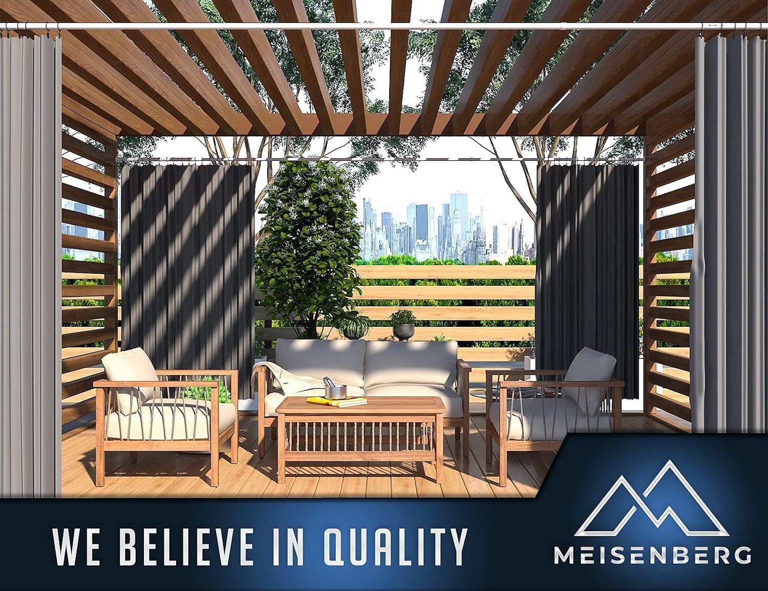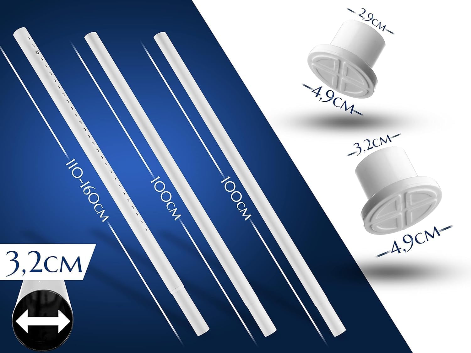 MEISENBERG Корниз за завеси от неръждаема стомана без пробиване 310-360 см, Ø32 мм бял Многофункционален корниз за завеси със затягане - разтегателен телескопичен скобен прът - за преградна стена, завеса и балкон