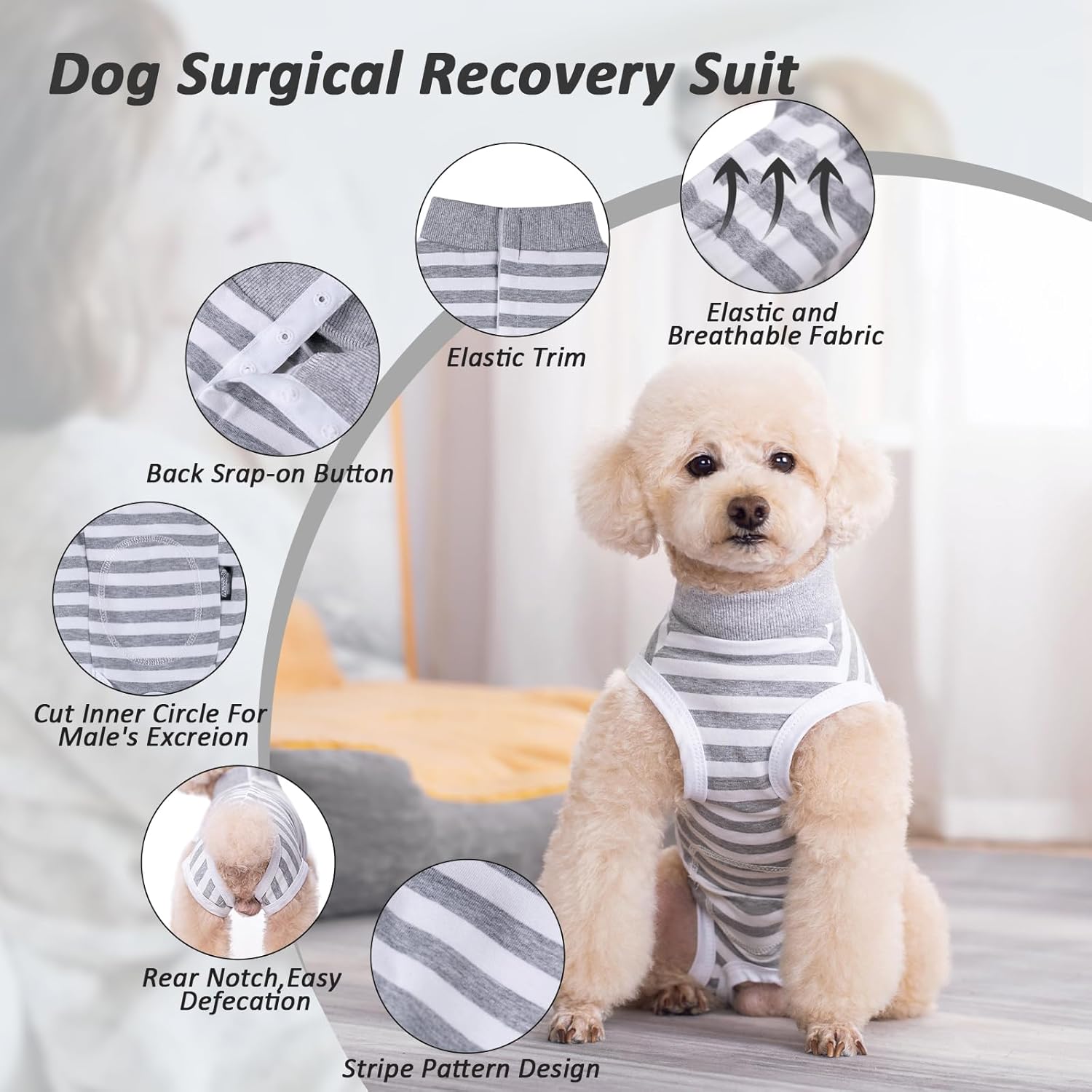 • 【Удобен и мек】Следоперативният боди за кучета е изработен от високоеластичен, висококачествен памук. Той е удобен, мек, дишащ и лек, не избледнява, като помага за поддържане на зоната суха и чиста, като по този начин намалява риска от инфекция. Хирургичният възстановяващ костюм прилепва плътно към тялото на кучето, облекчавайки следоперативното напрежение и помагайки на вашия домашен любимец да се възстанови по-бързо.