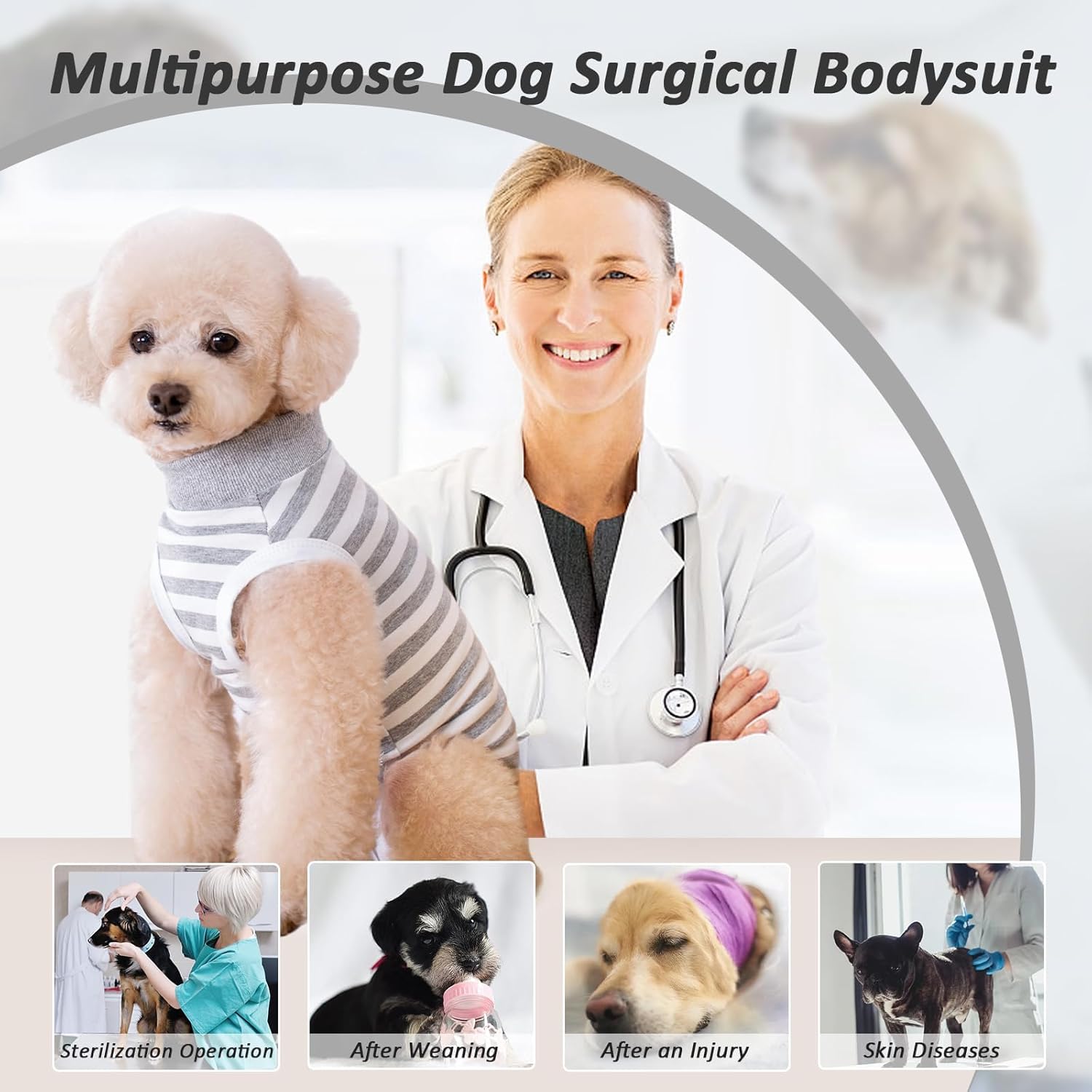 • [Алтернатива на боядисване с конус] Този костюм за кучета е професионална алтернатива за възстановяване на кучета. Пълното покритие предотвратява облизването на рани от страна на кучетата, което води до падането им, и облекчава алергичните реакции и др. След операция може да успокои тревожността на кучето и да защити тялото му.