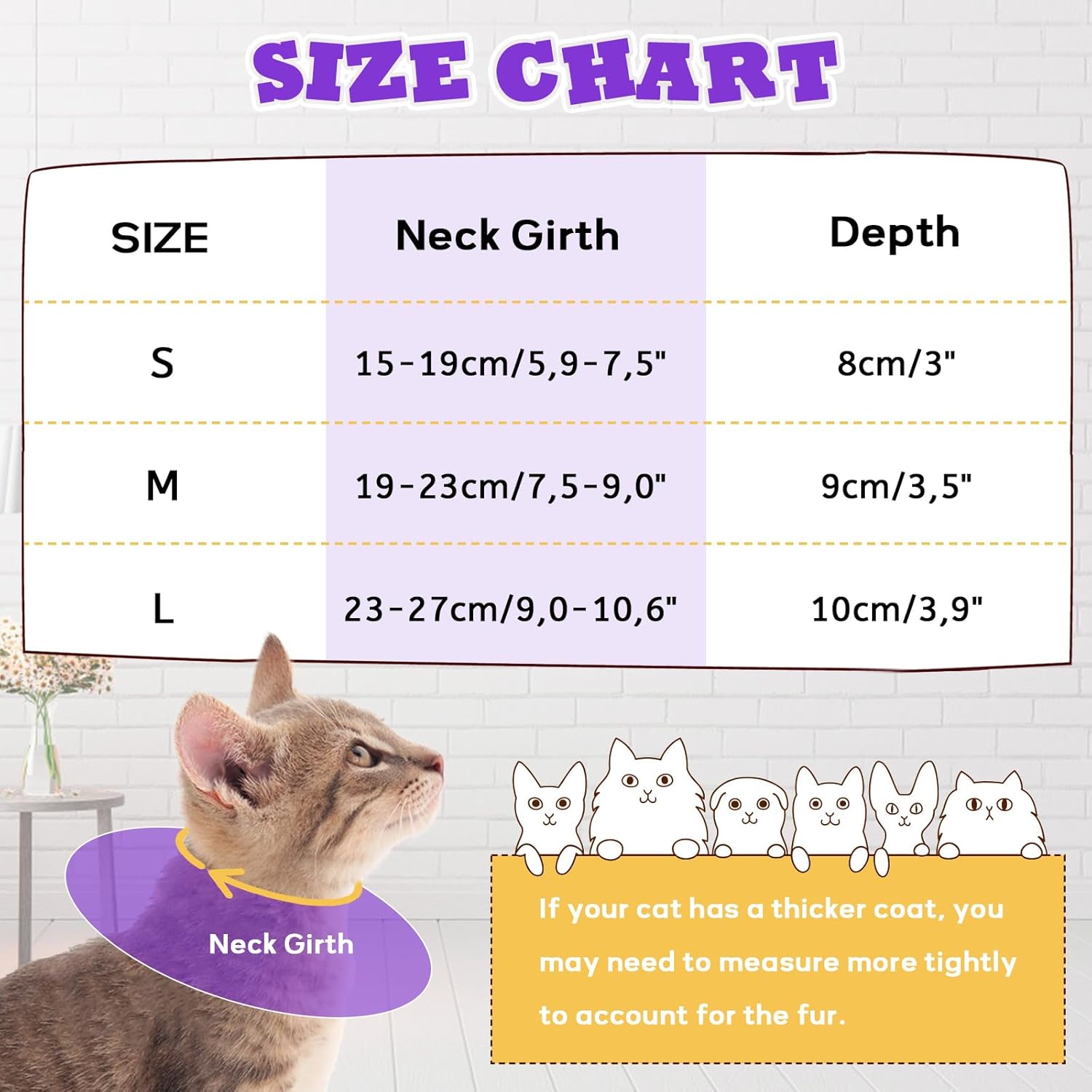 Мека котешка каишка за предотвратяване на облизване - Следоперативна котешка каишка за предотвратяване на облизване, Мека защитна каишка за котки, Регулируем конус, Лилава M