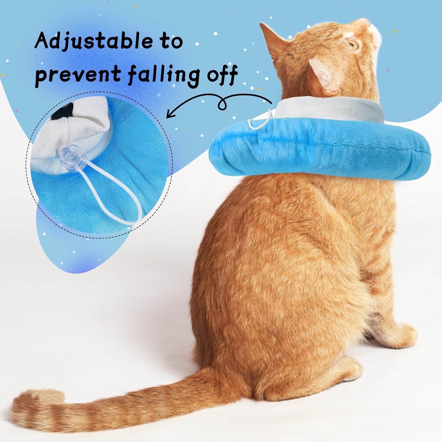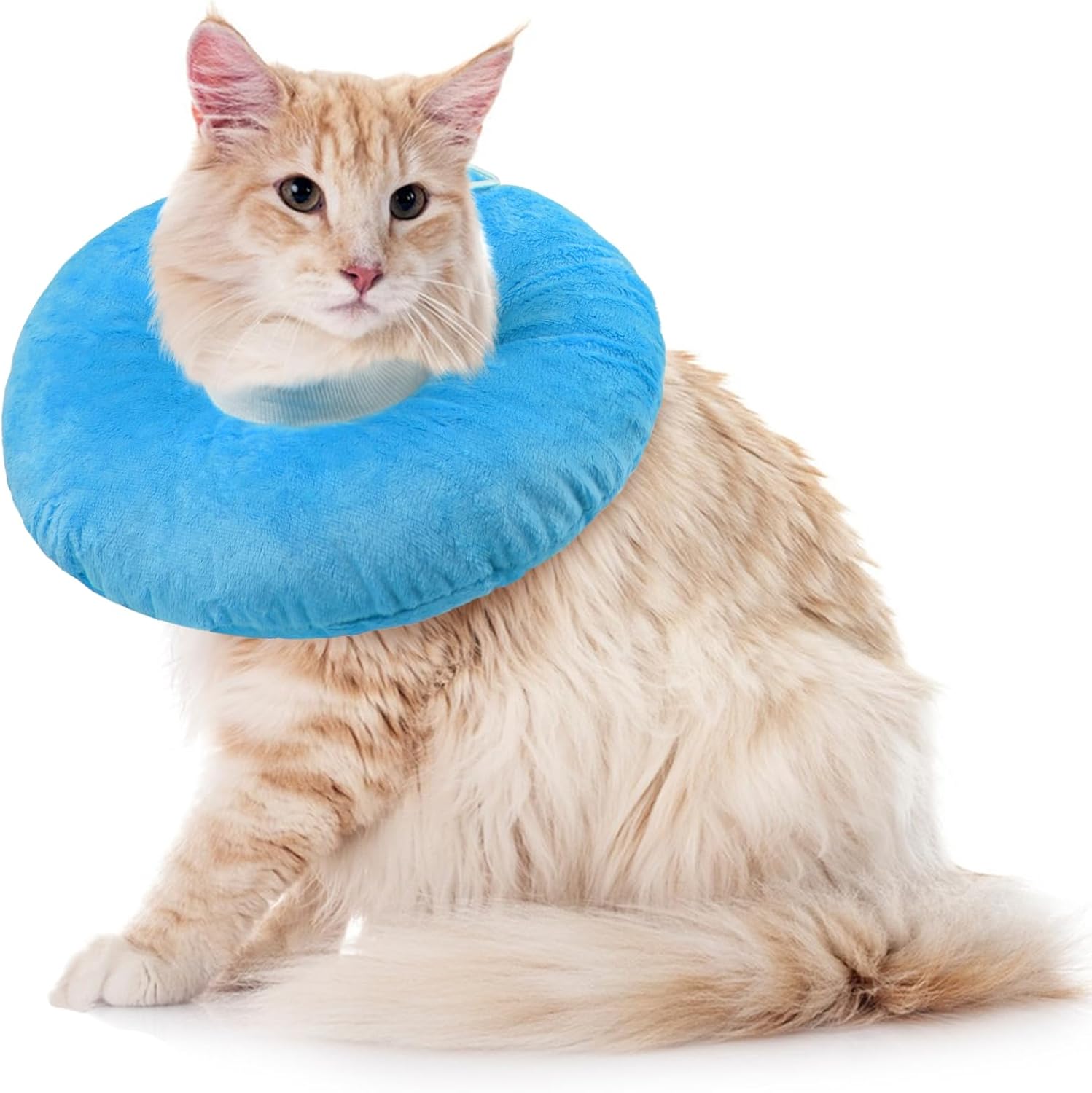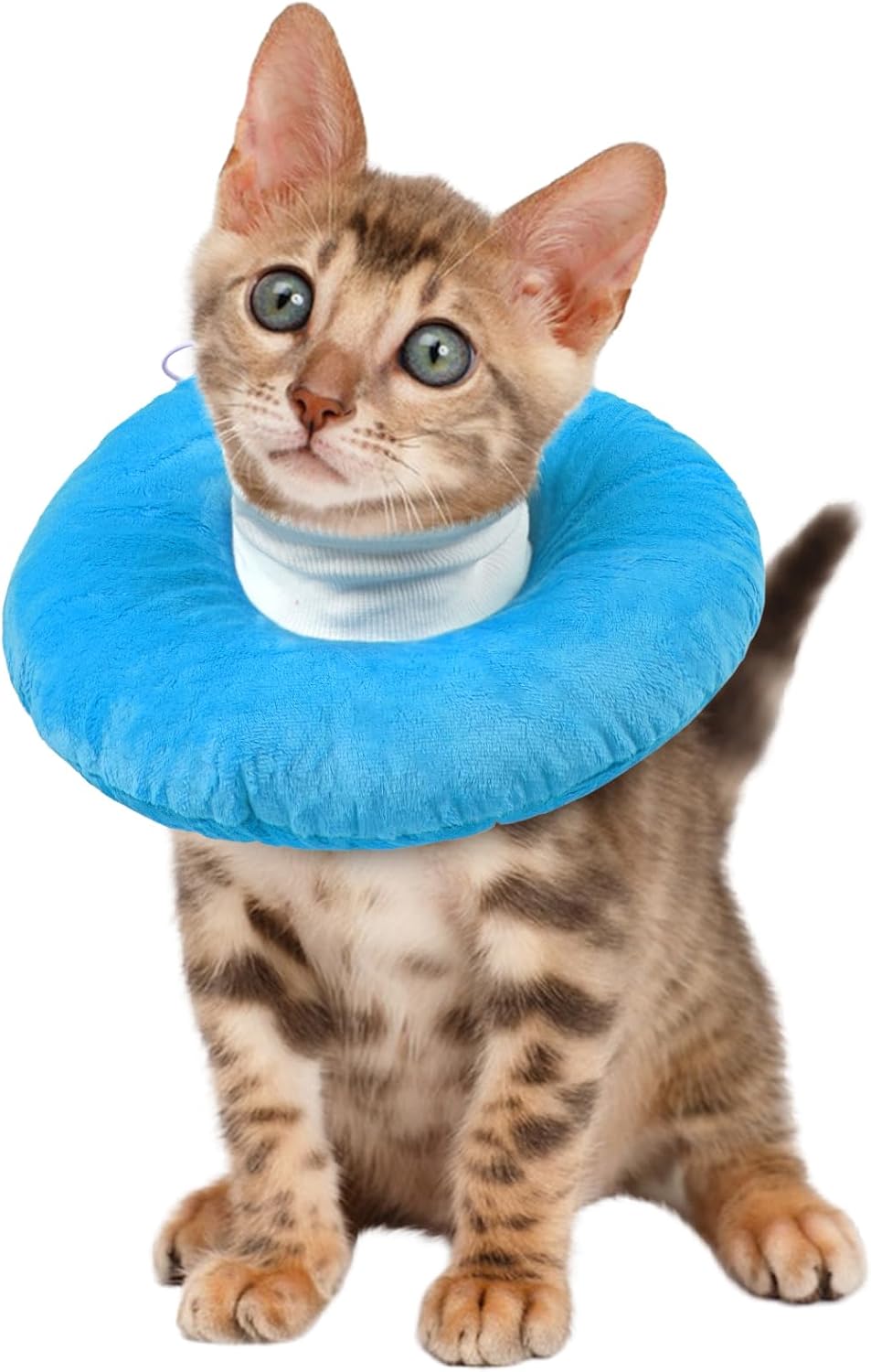 Мека шина за врата на котката, предотвратяваща облизване, шина за врата за кастрирани котки, защита против облизване, протектор за врата на котката (син, M)