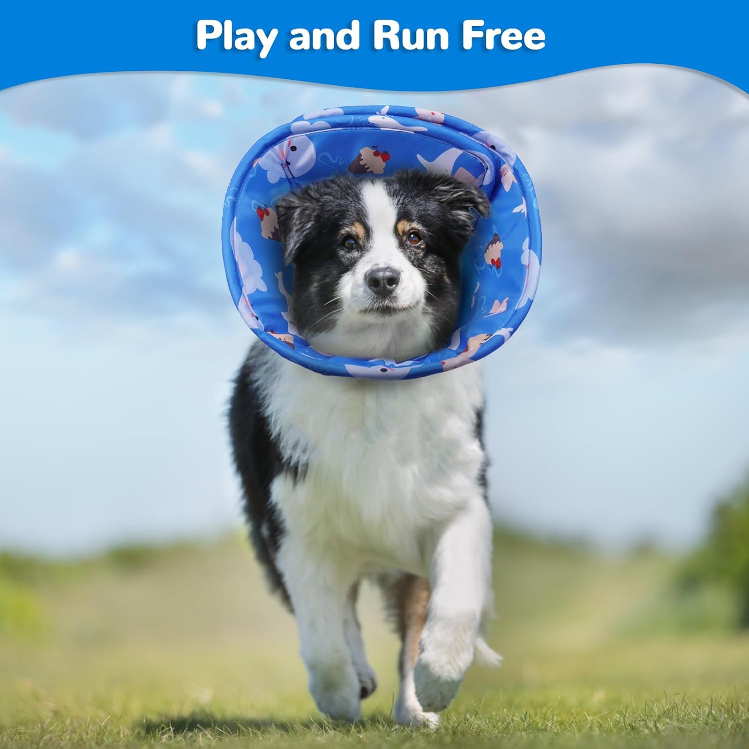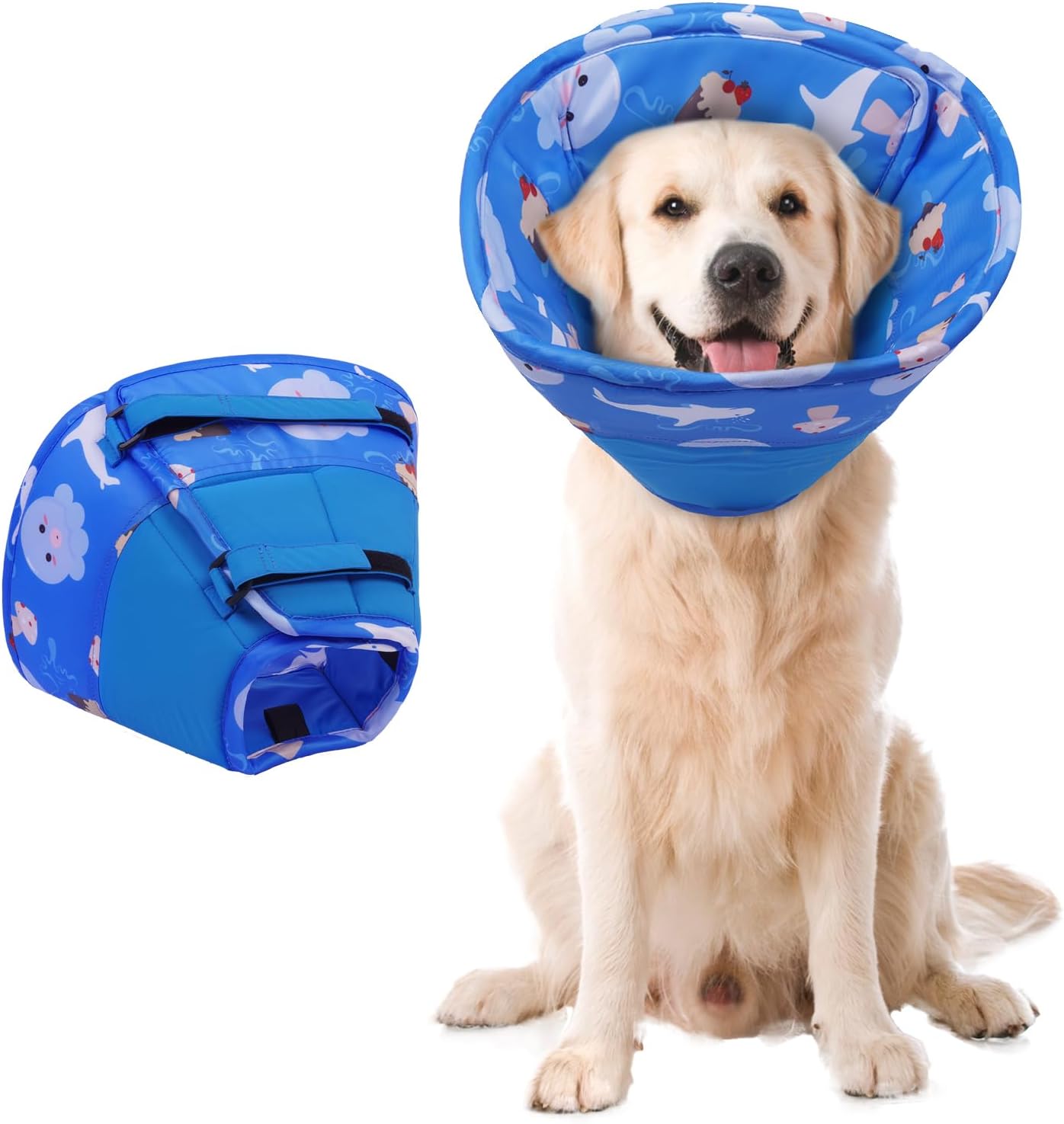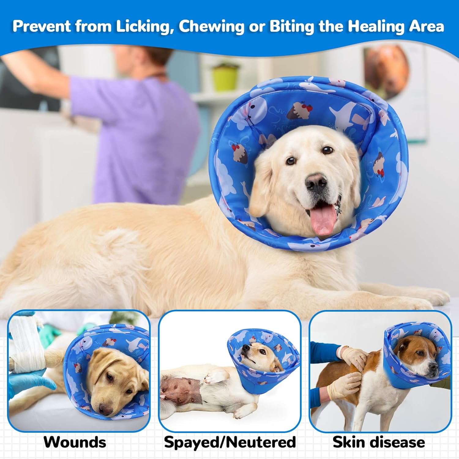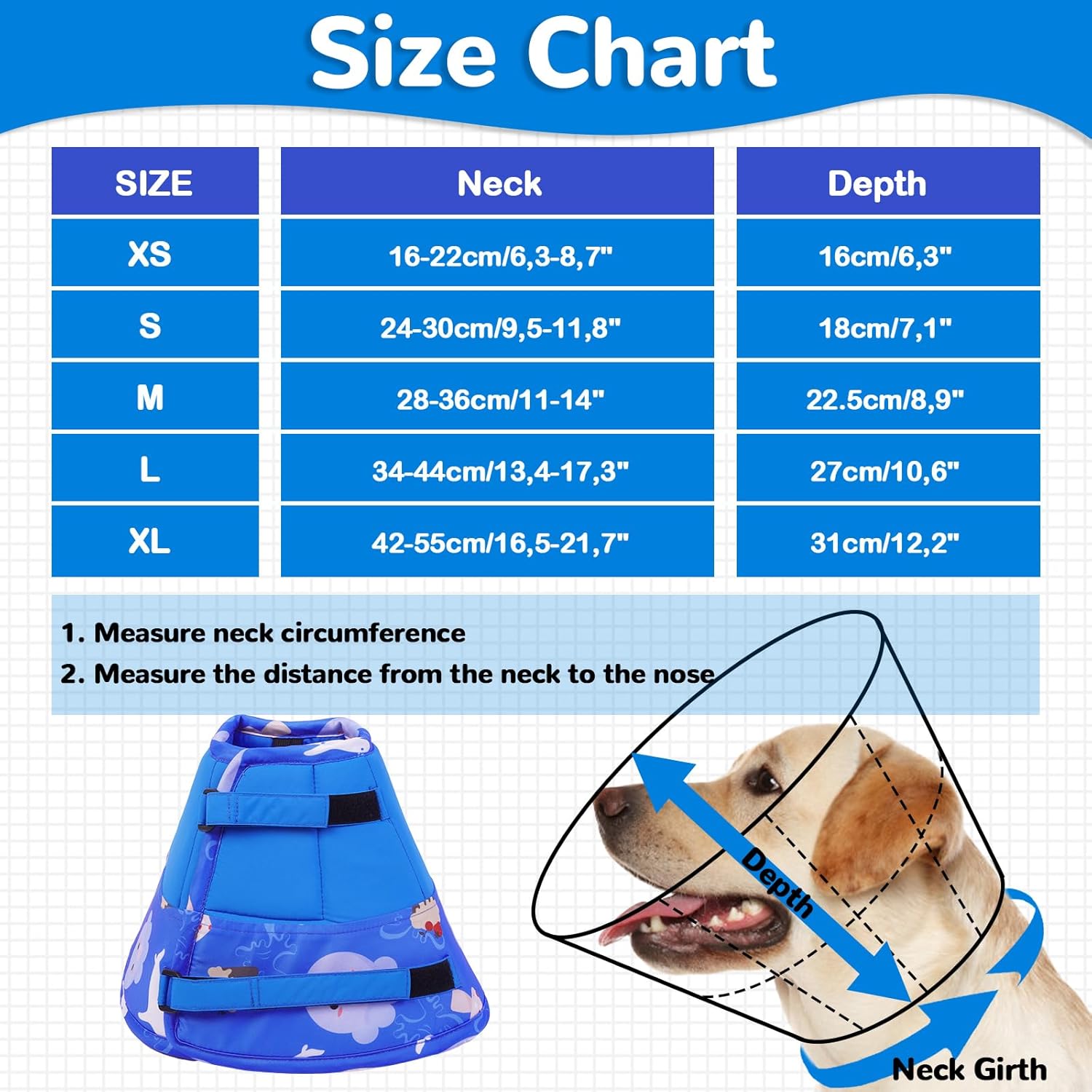 Мека шина за врата за кучета - Нашийник за кучета, предотвратяващ облизване, Водоустойчив защитен нашийник за кучета след операция, Лек конус за предотвратяване на облизване или одраскване на рани (тъмносин S)