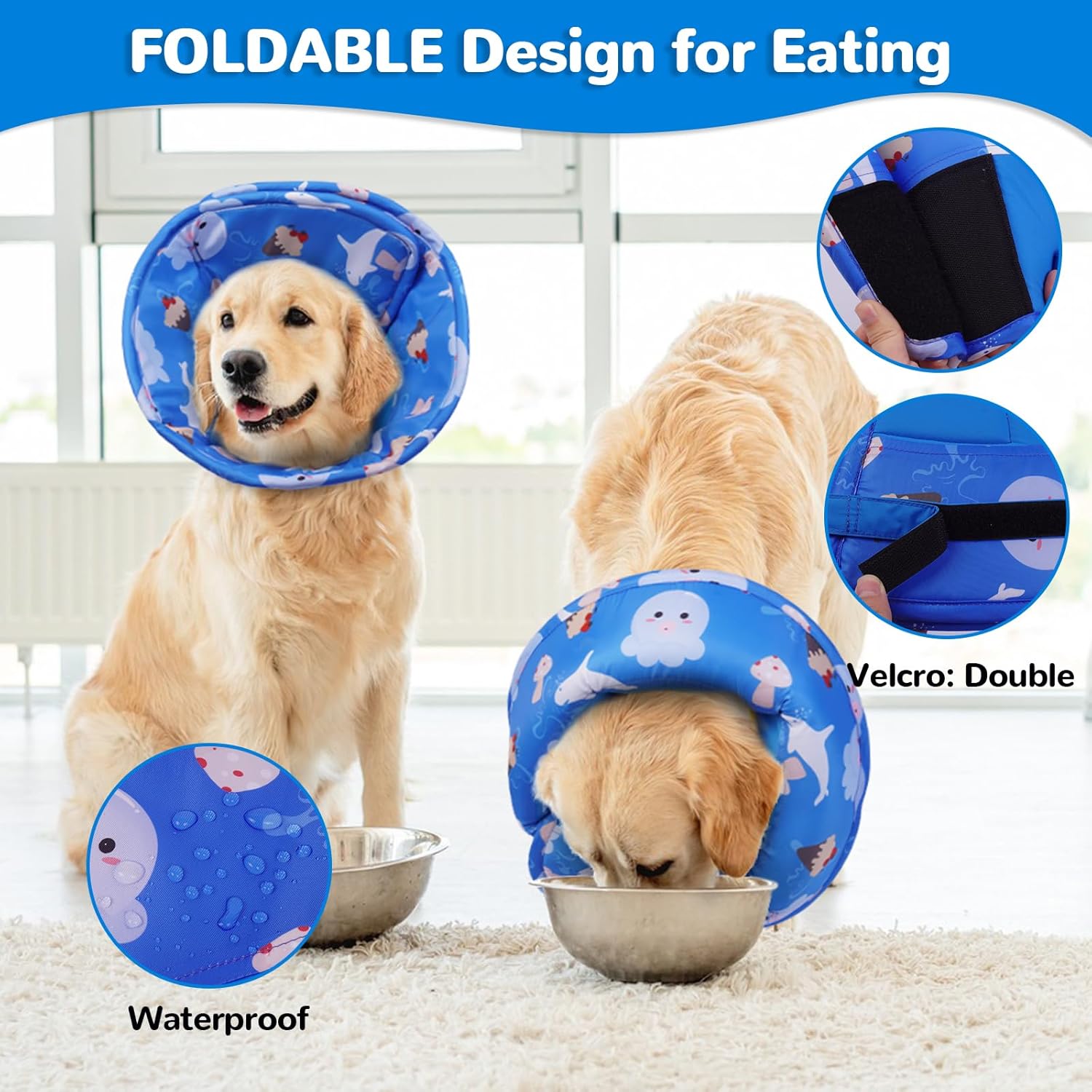 • 【Универсален обратим дизайн за хранене и пиене без стрес】 Този предпазител за кучета е с обратим дизайн, позволяващ на кучето ви да се храни и пие безпрепятствено. Водоустойчивата материя улеснява почистването и осигурява удобство както за вас, така и за вашия пухкав компаньон.