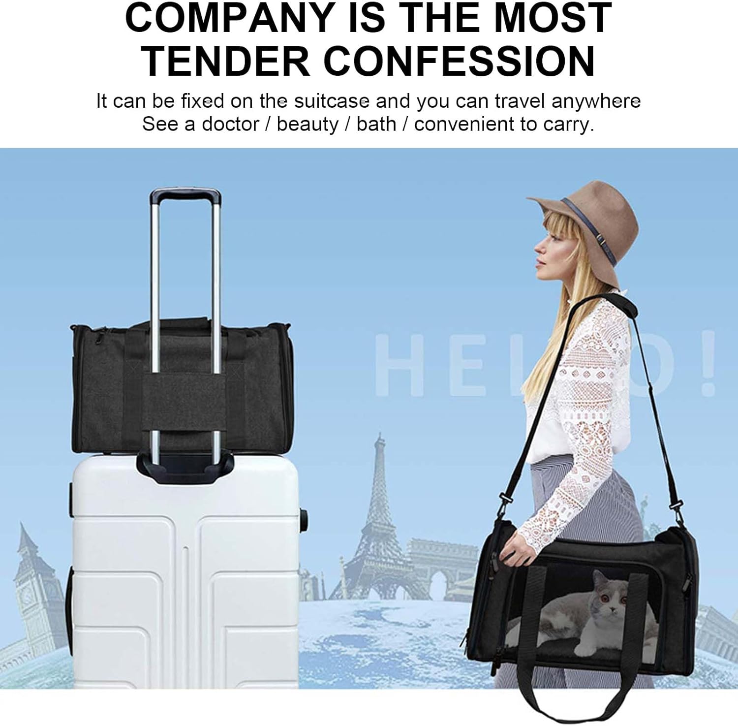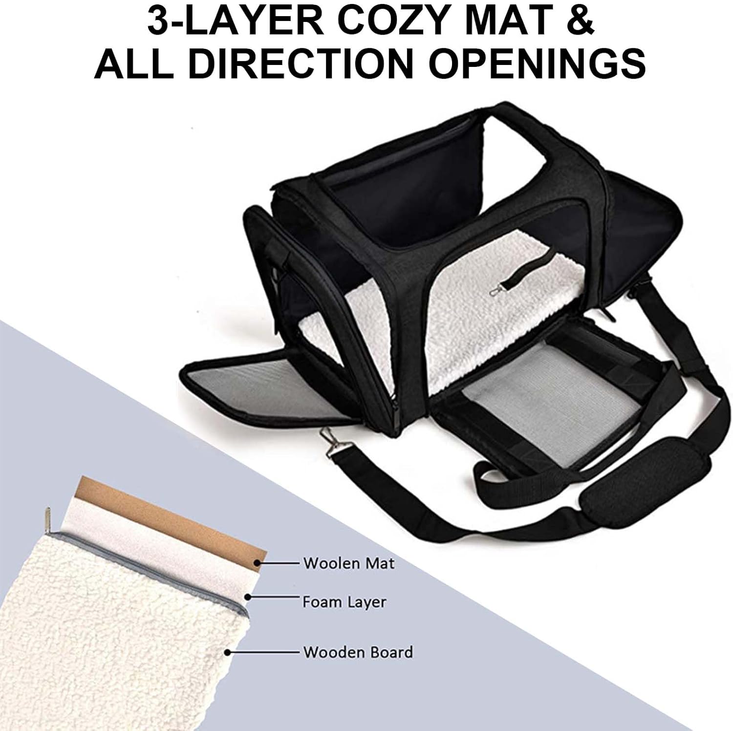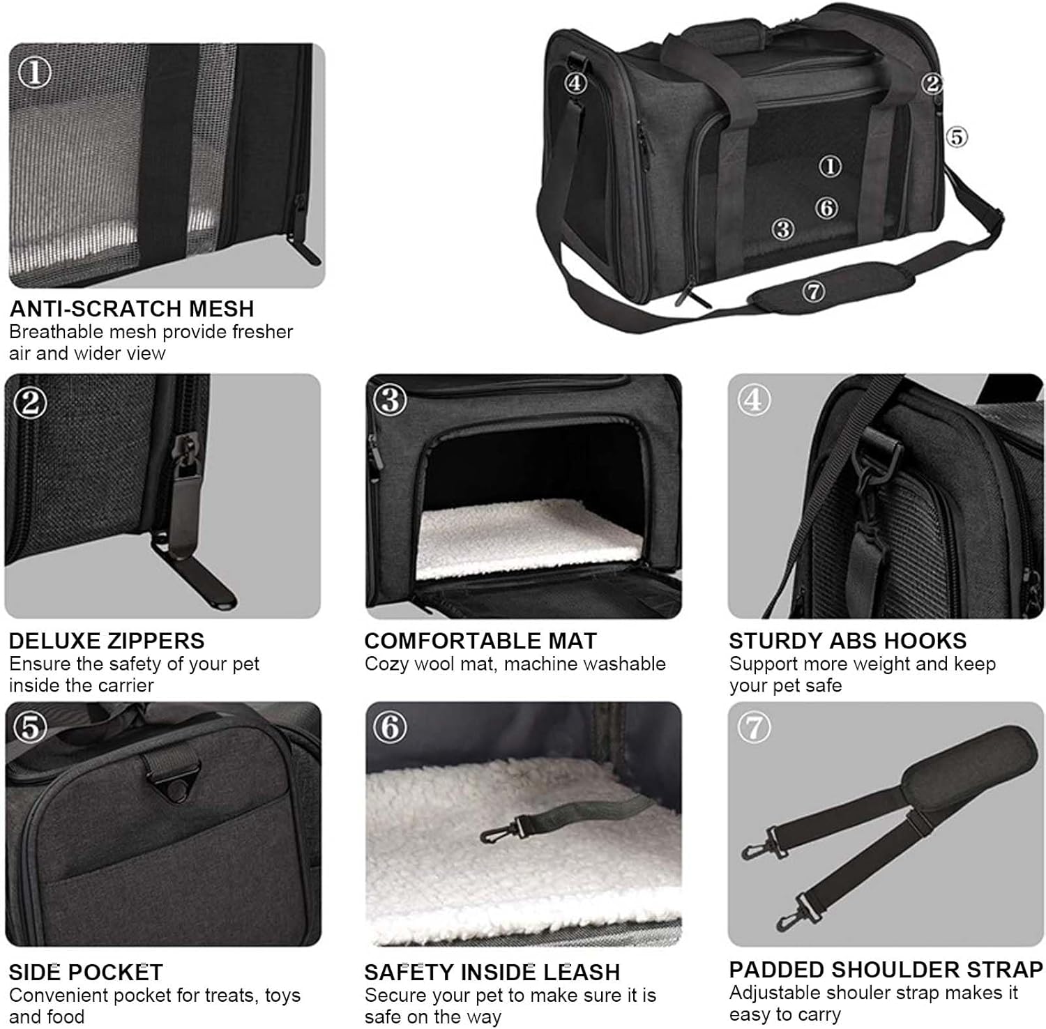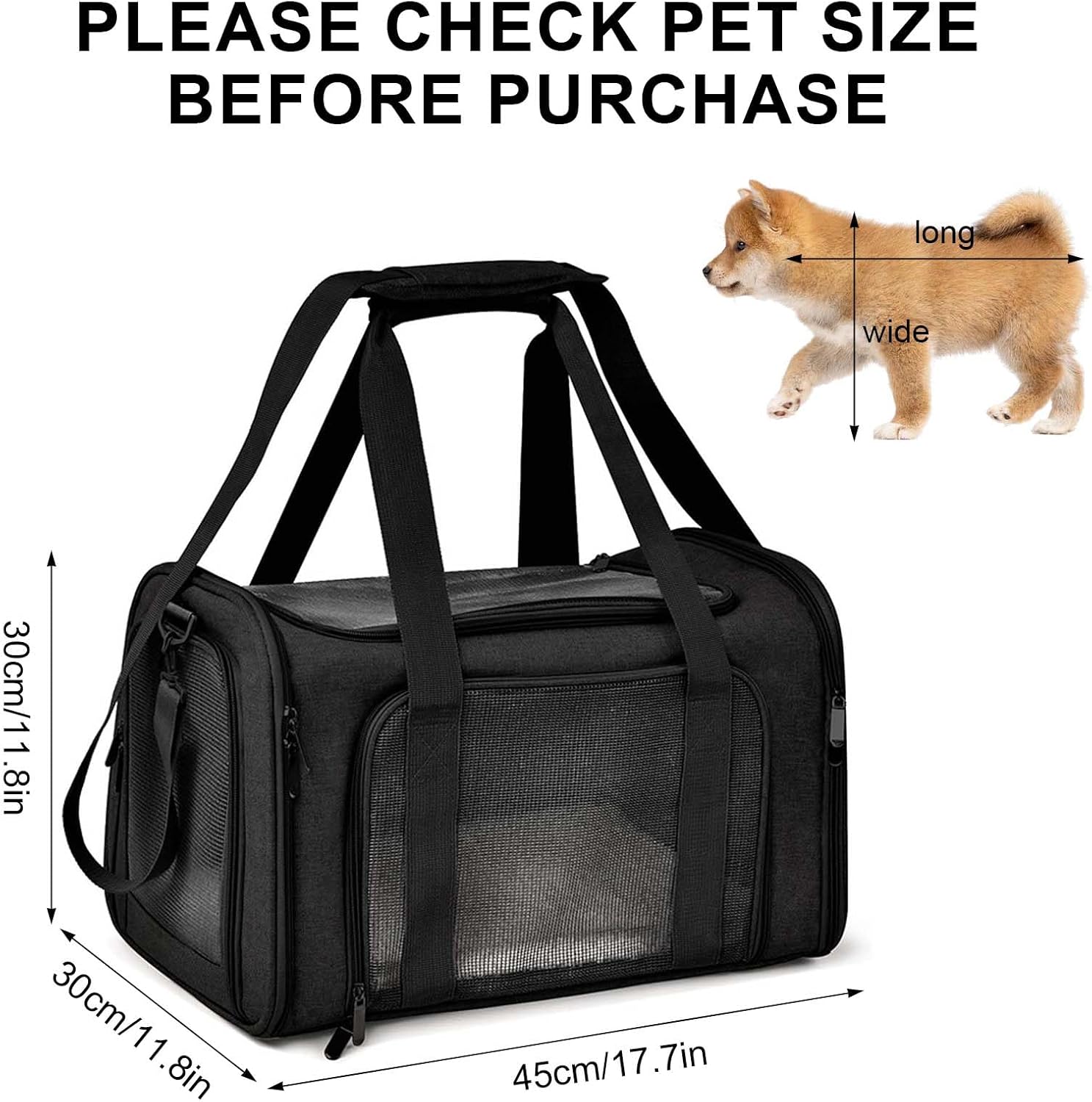 Specifications: Product Name: Cat/Dog Carrier Bag Material: 600D Oxford Cloth Color: Black, Grey Size: 17 x 11 x 11 inches (L x W x H) Weight: 950g Package includes: 1 x Pet Carrier Features: The cat carrier can be carried in your hand with the padded top handle or over the shoulder with the included removable carrying strap. The rear strap can also be used as a seat belt to attach the cat carrier bag to your luggage when travelling. The cat carrier comes with an extendable cuddly fleece pet mat that provides extra sleeping space for your traveling pet. The improved version offers more