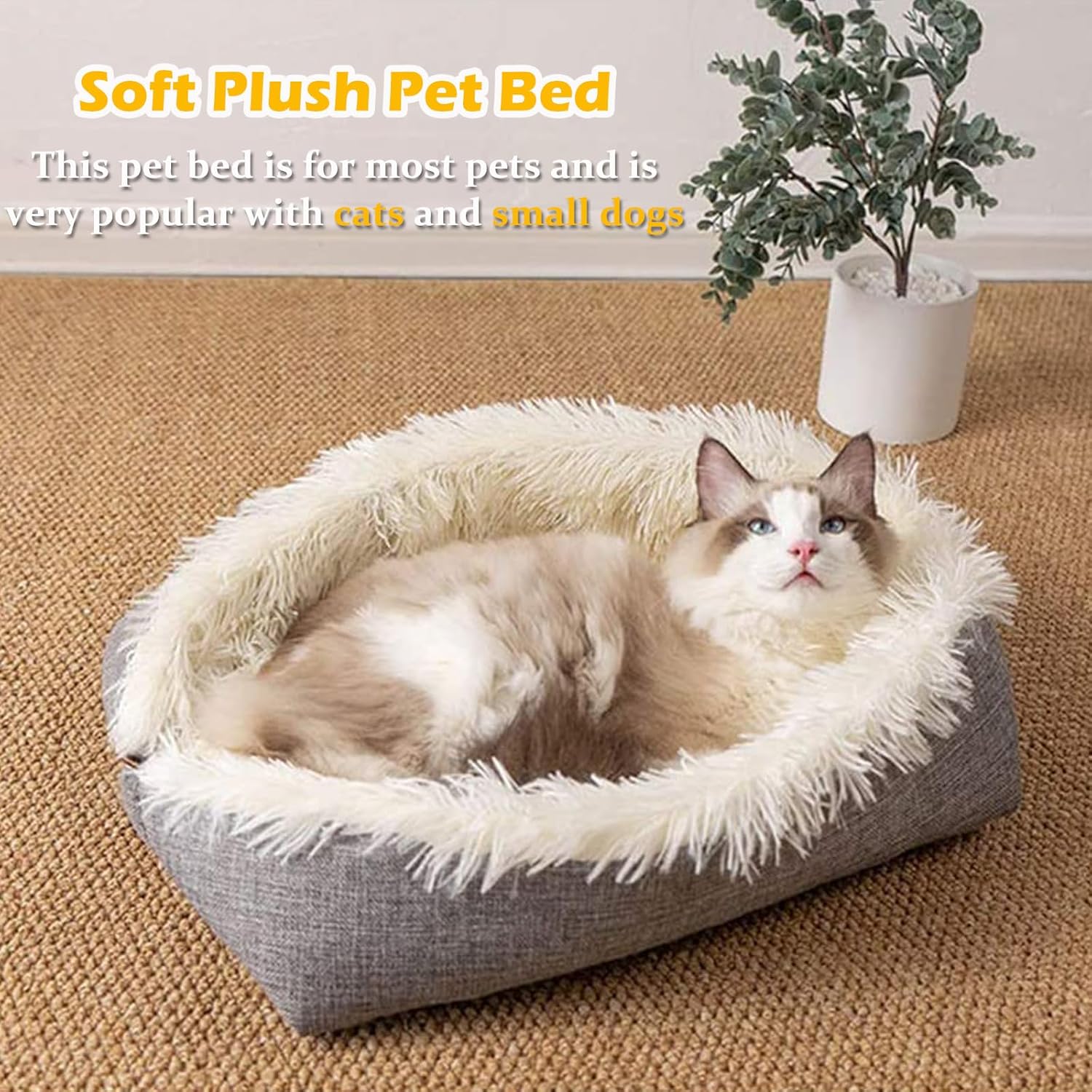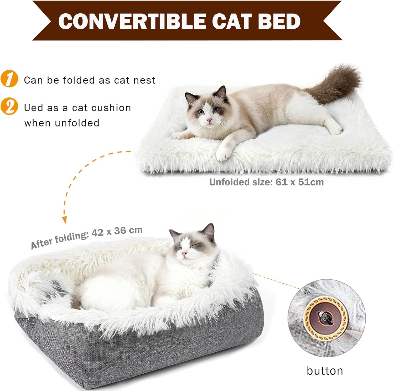 Меко котешко легло, което може да се пере, 42 x 36 см, плюшено легло за котки и малки кучета, 2 в 1 котешко легло, спален чувал, топла домашна възглавница за котки, котешко одеяло, перещо се гнездо за котки