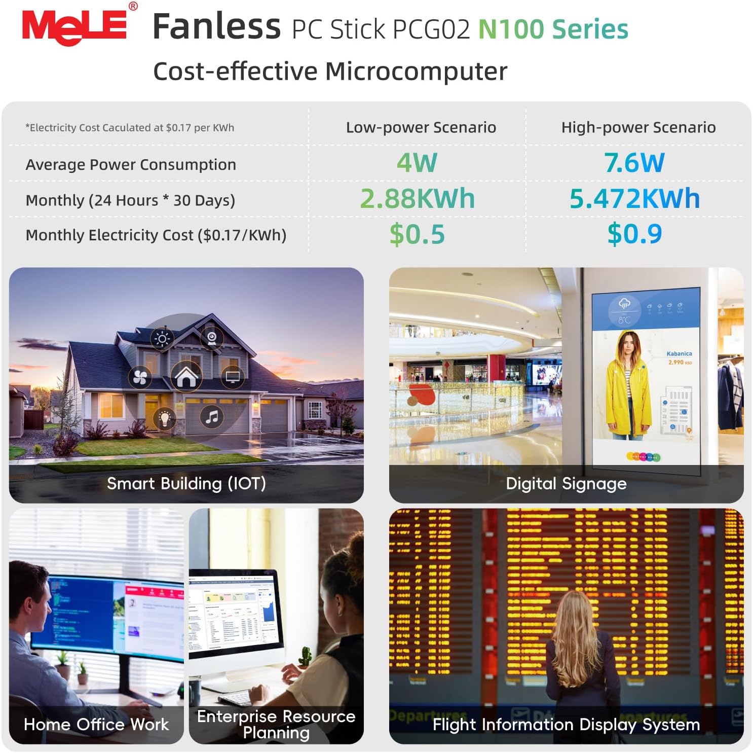 MeLE PCG02 безвентилаторен мини компютър, N100 8GB, 128GB, HDMI, поддържа Linux Ubuntu и Debian за IoT, дигитална реклама и предприятия