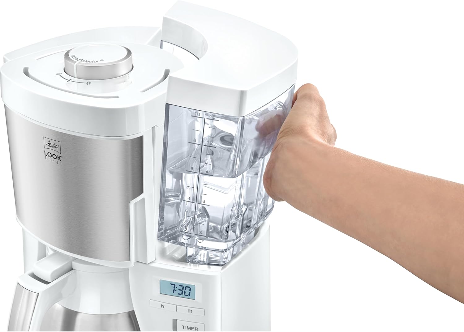 Melitta Look V Timer Филтърна кафе машина, пластмаса, 1.25 литра., С термокана, бяла