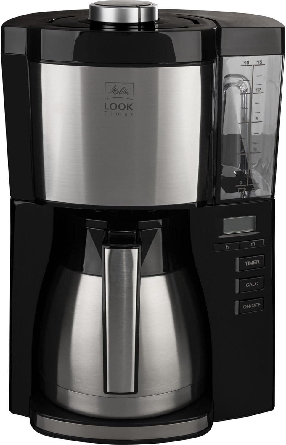 Melitta Look V Timer Филтърна кафе машина, пластмаса, 1.25 литра., С термокана, Черна