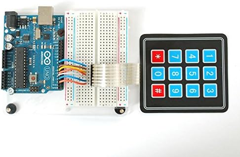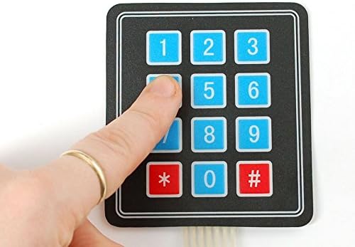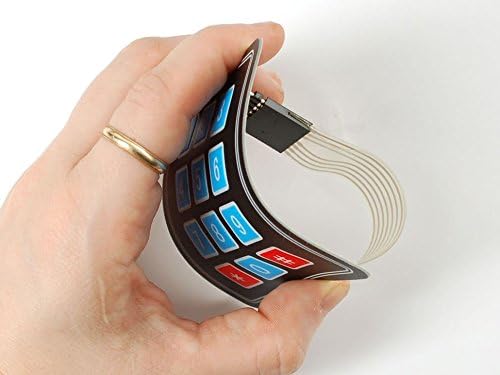 Въведете секретния си ключ в тази матрична клавиатура Adafruit. Тя има 12 бутона, подредени в телефонна мрежа 3x4. Изработена е от тънък, гъвкав мембранен материал със самозалепваща се подложка (просто отстранете хартията), така че можете да я прикрепите към почти всичко. Бутоните са свързани, за да образуват матрица, така че са ви необходими само 7 пина на микроконтролера (3 колони и 4 реда), за да сканирате през подложката. Съответства на RoHS.