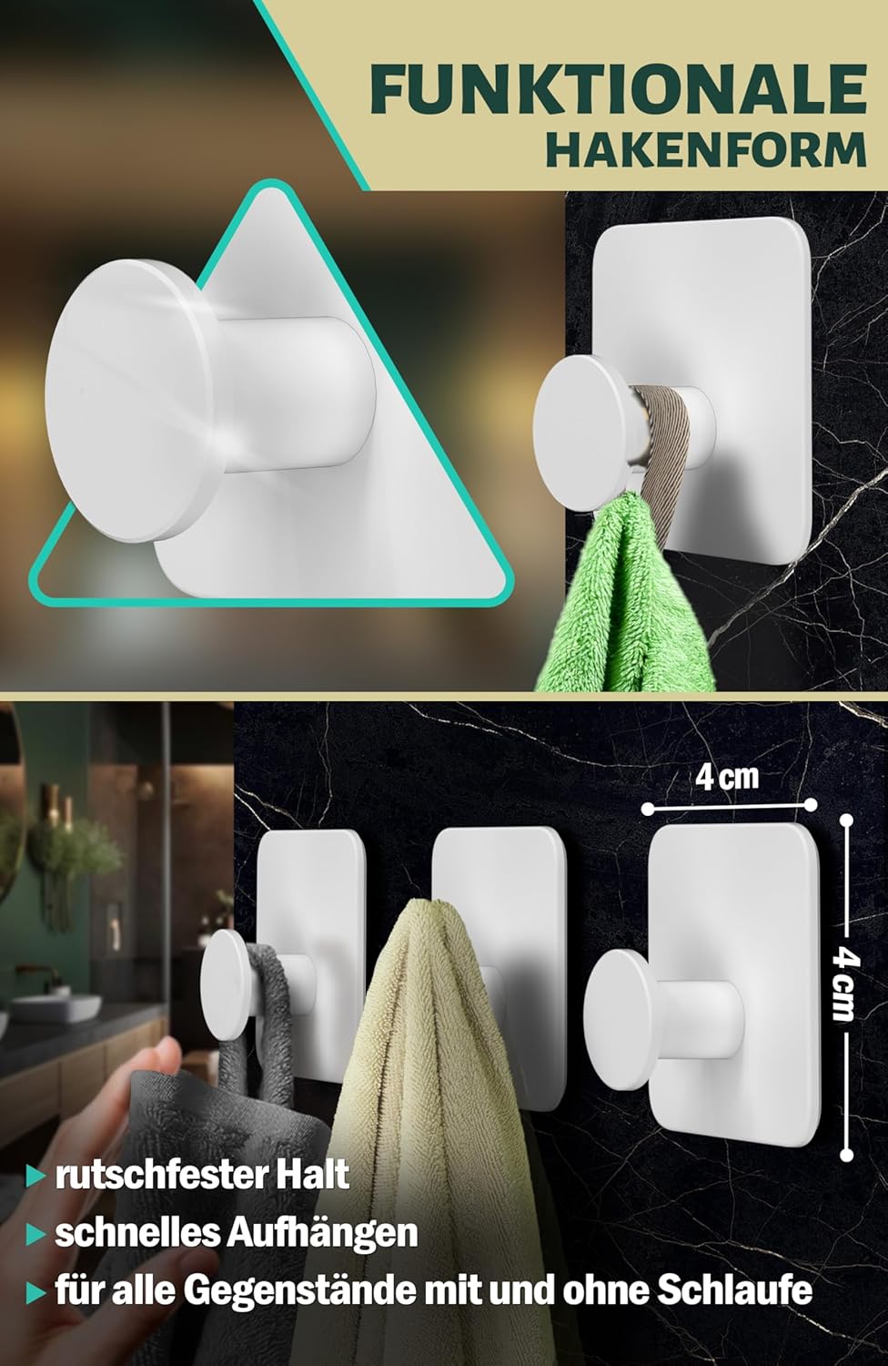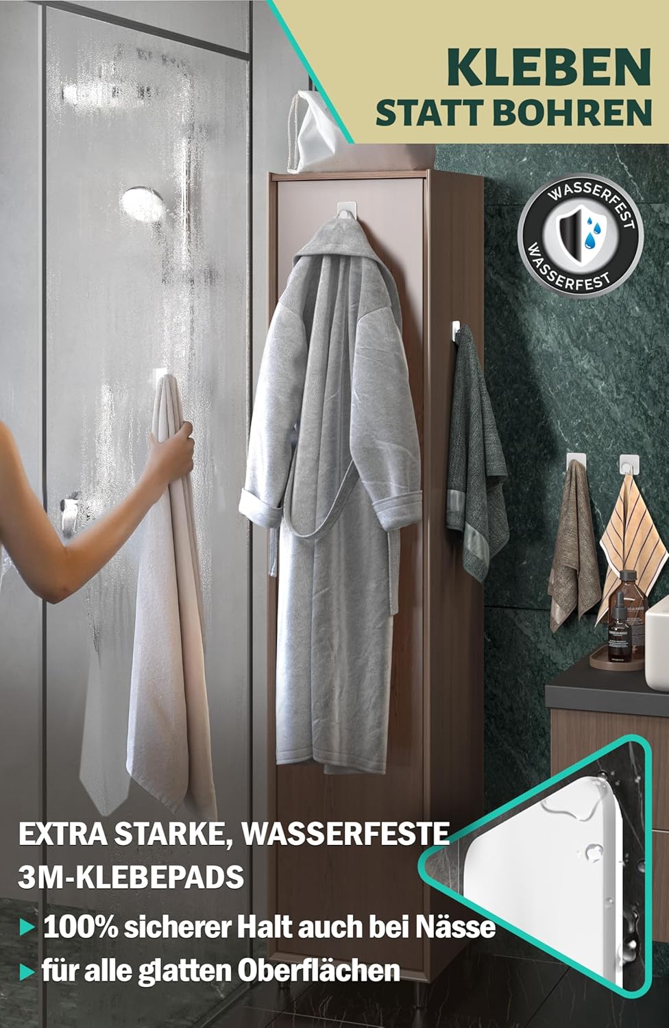 • Висококачествени материали: издръжливи самозалепващи се куки за кърпи, изработени от неръждаема стомана V2A и висококачествена изработка, осигуряват двойна защита от ръжда; лесни за почистване; идеални като аксесоар за баня