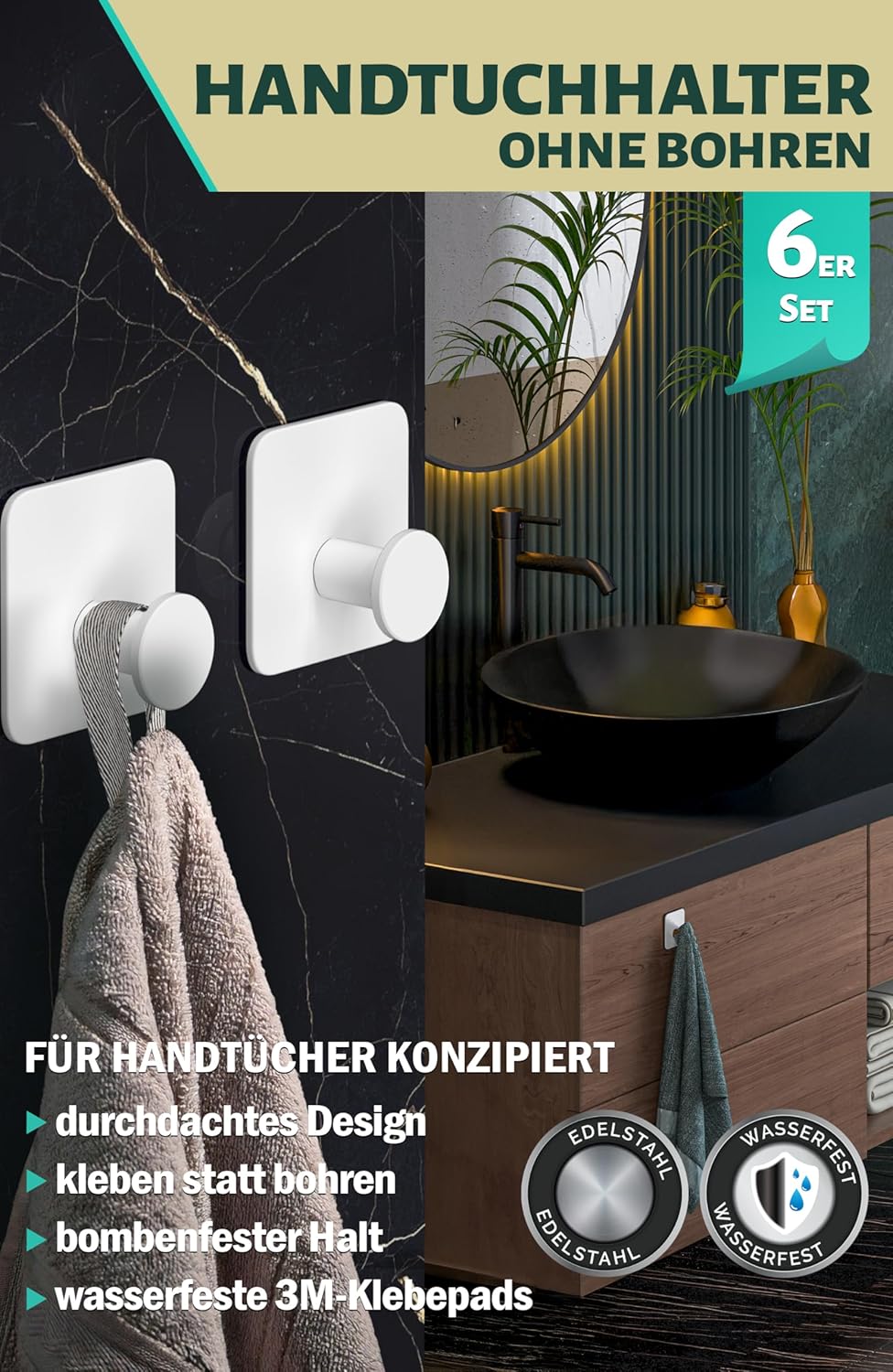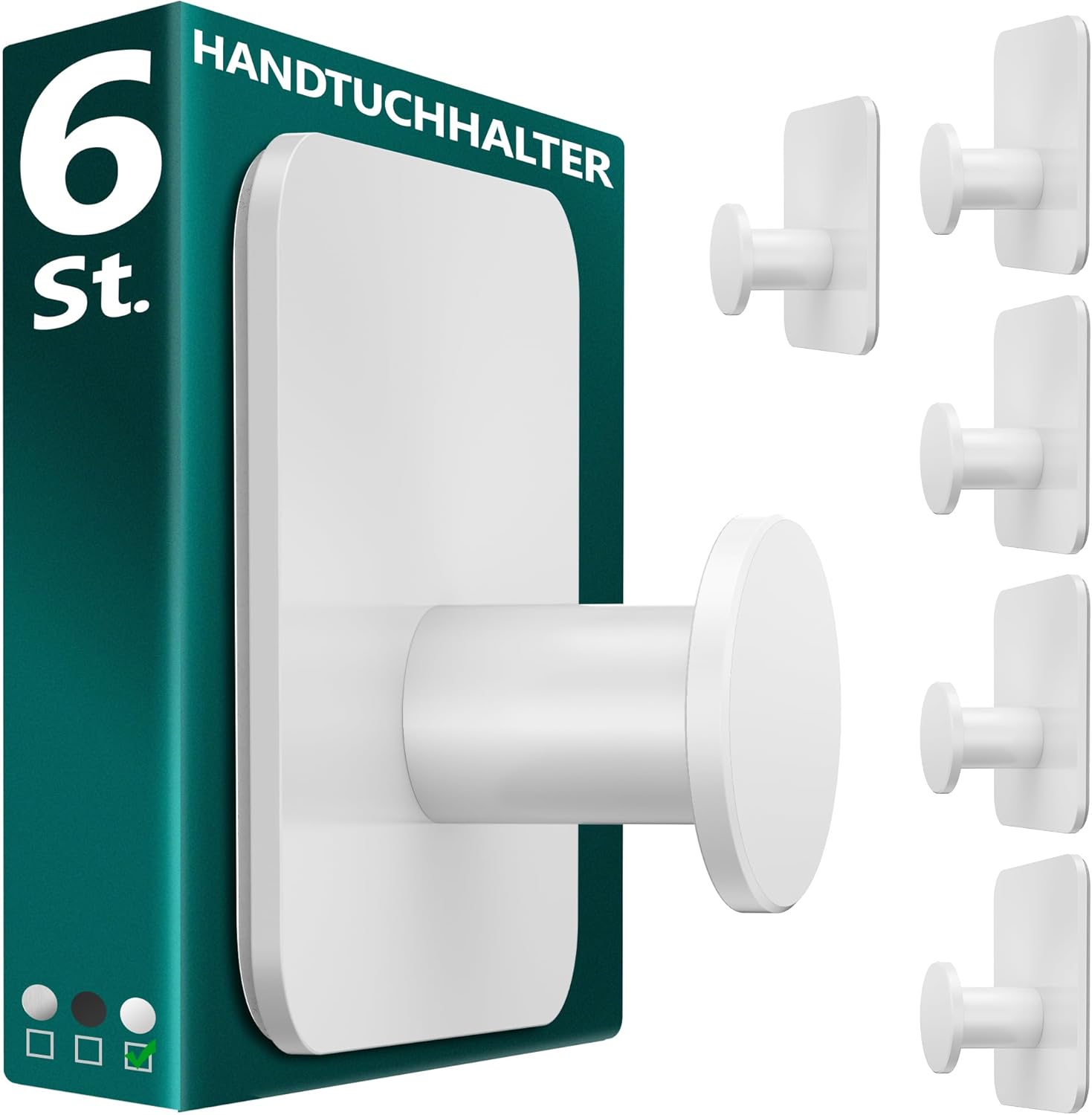Menz 6 бр. бели закачалки за кърпи без пробиване - Здрави закачалки за кърпи за баня Модерни самозалепващи кукички Куки за баня Самозалепващи кукички Идеални като функционални куки за кърпи