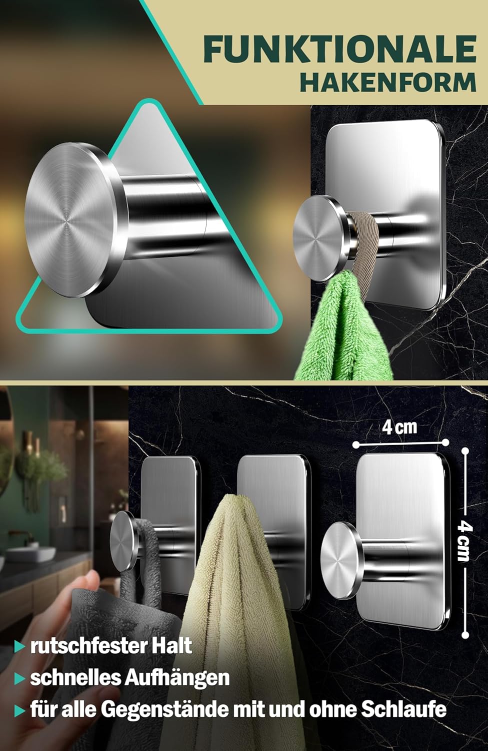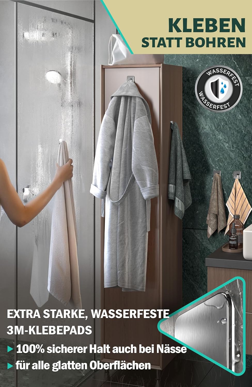 • Висококачествени материали: издръжливи самозалепващи се куки за кърпи, изработени от неръждаема стомана V2A и висококачествена изработка, осигуряват двойна защита от ръжда; лесни за почистване; идеални като аксесоар за баня