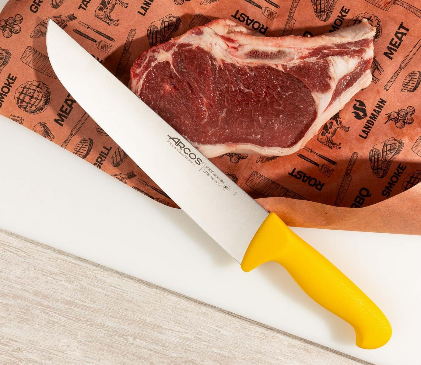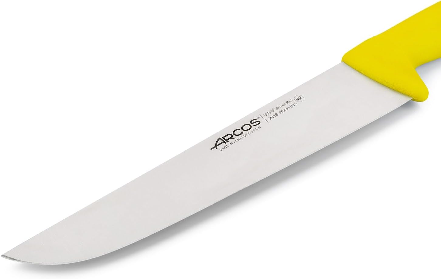 Месарски нож Arcos с острие от неръждаема стомана 250 мм - Професионален кухненски нож за рязане на месо, риба и зеленчуци - Ергономична дръжка от полиоксиметилен, жълт, серия 2900