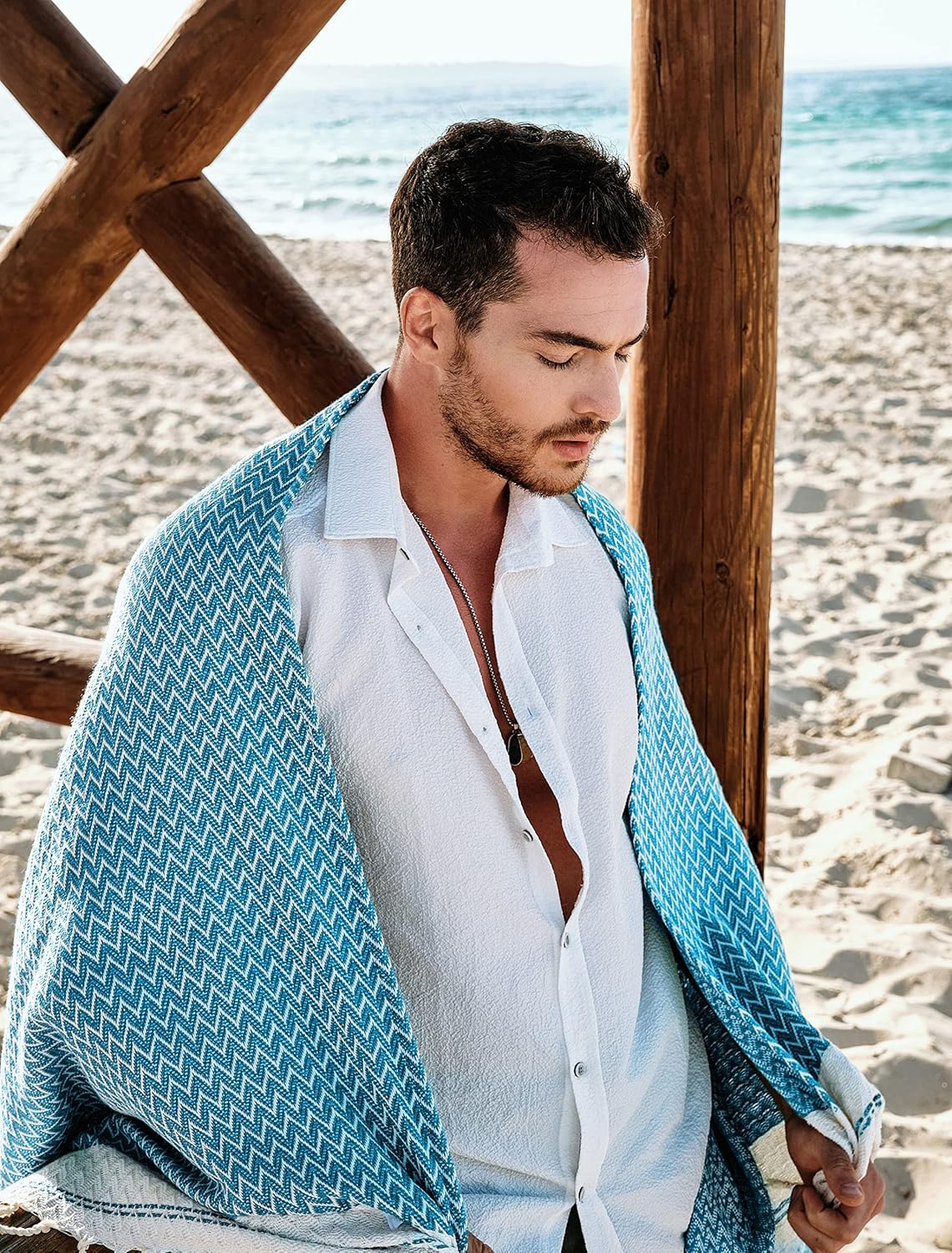 • Леки и лесни за носене: Турските кърпи не съдържат пясък, така че са много полезни и много по-лесни за опаковане и носене в сравнение с хавлиените кърпи. Когато ги използвате, ще забележите колко специална е материята. Те са леки, компактни, така че можете да се опаковате удобно и да останете сухи, където и да отидете.