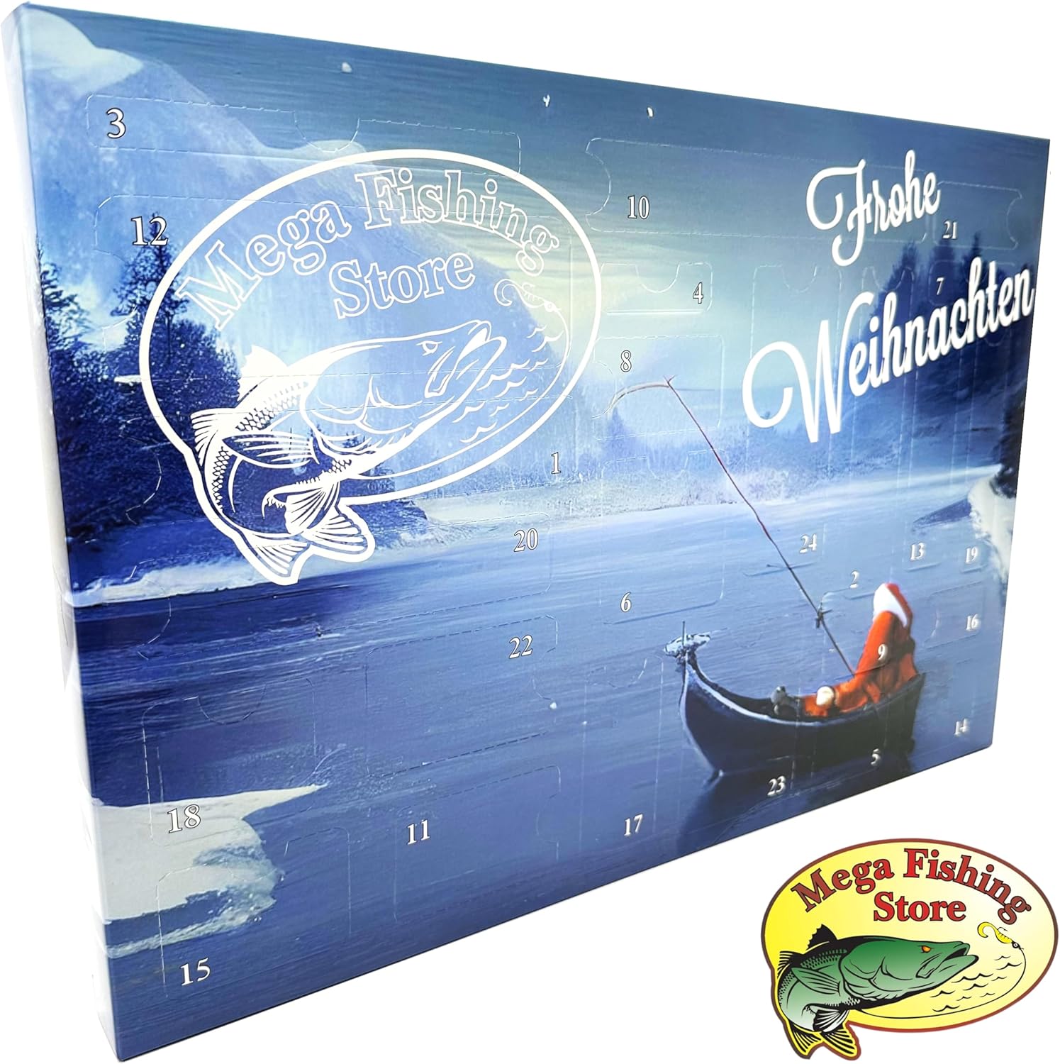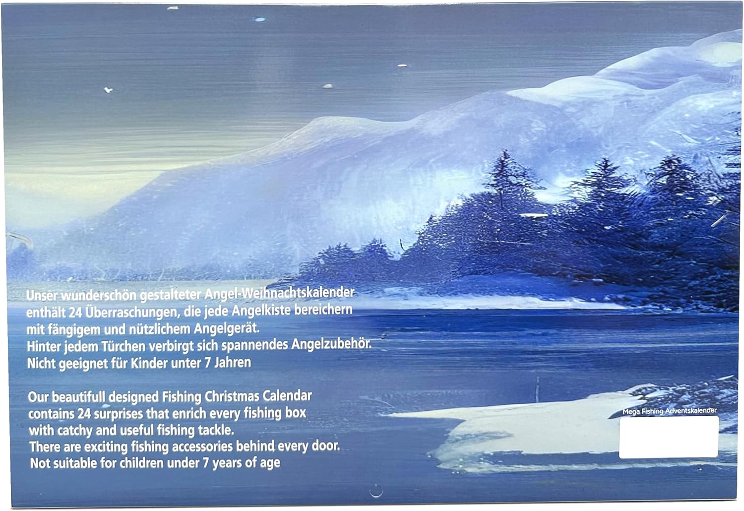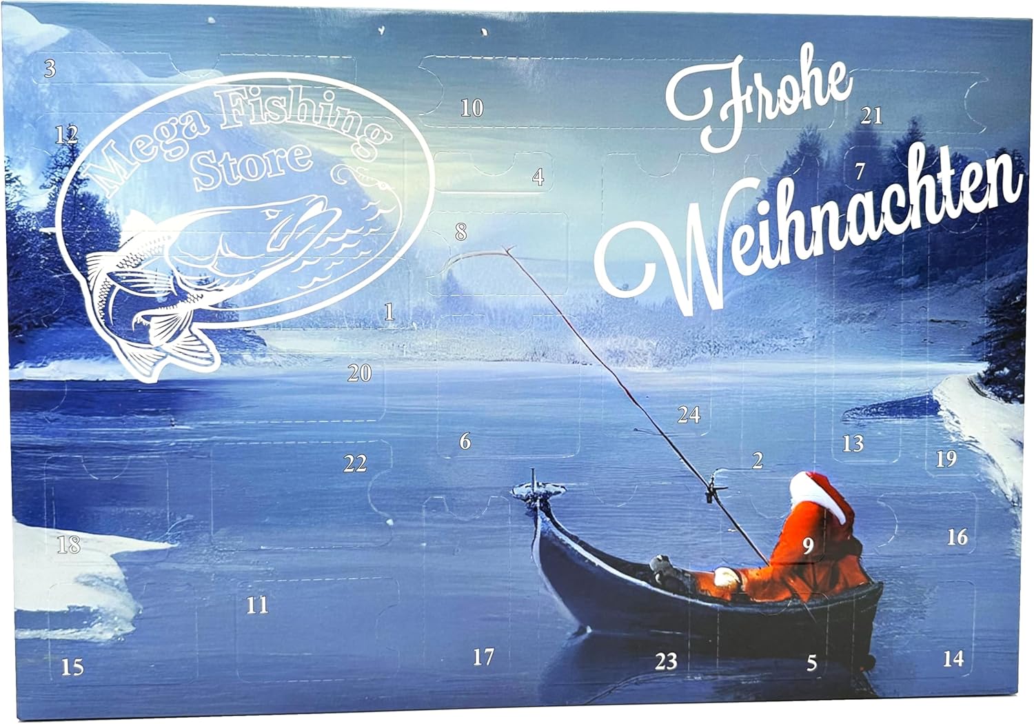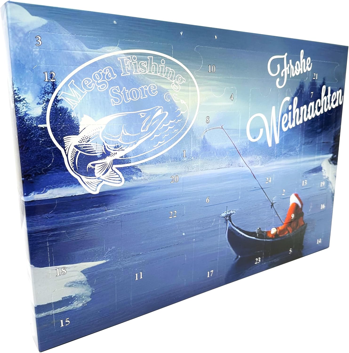 Коледният адвент календар Mega Fishing Angel съдържа 24 изненади, като изкуствени стръви, воблери, блесни, мигачи, гумени рибки, джиг глави, лъжици, плувки за хищни риби и други полезни риболовни аксесоари/такъми.