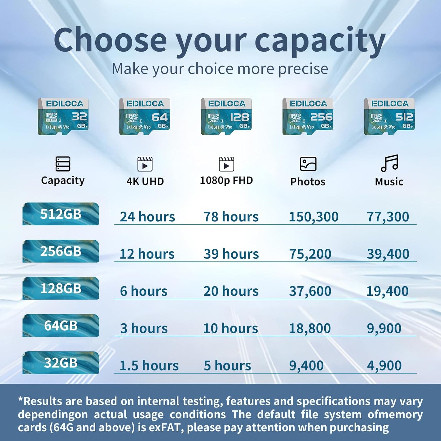 Файловата система по подразбиране на Micro SD картите (64G и повече) е exFAT, моля, обърнете внимание при покупка.