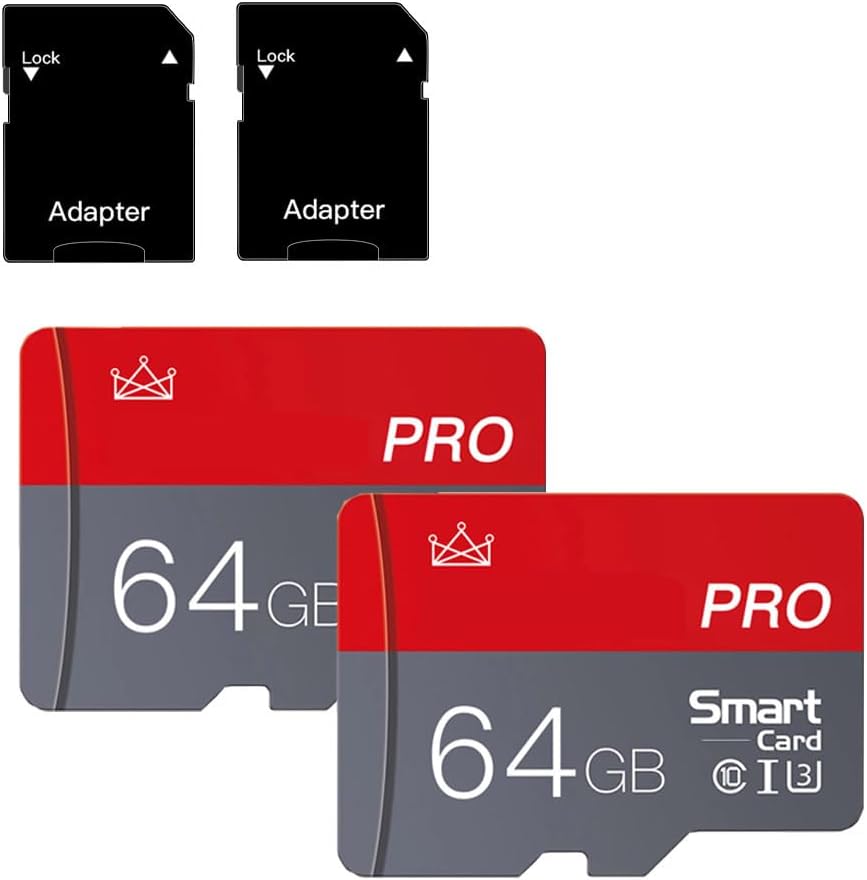 Micro SD карта 64GB Micro SD карти памет 64GB с SD адаптер Клас 10 Високоскоростна Mini SD карта за смартфони/фотоапарат/таблет, пакет от 2