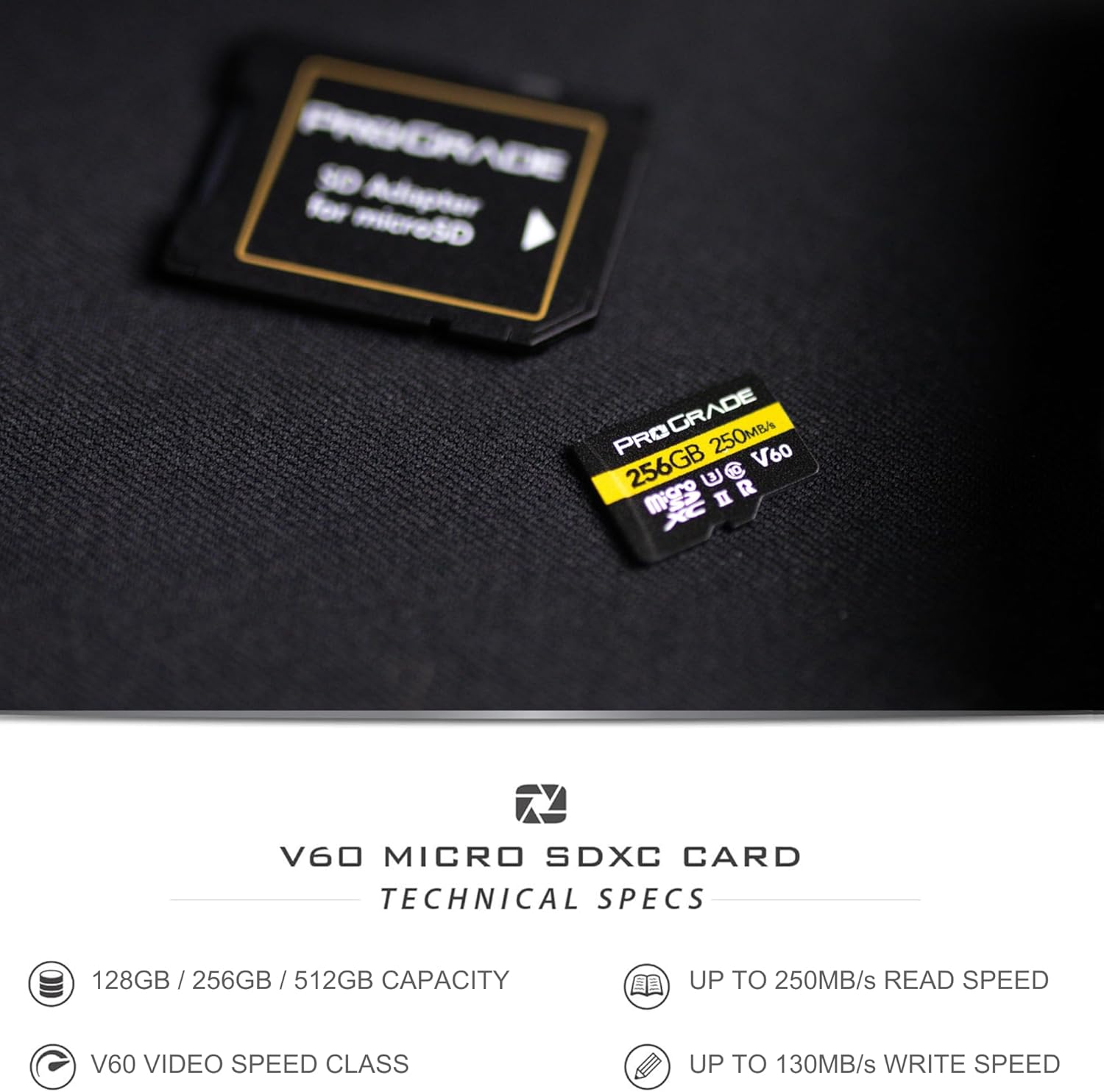 ProGrade Digital разработи microSDXC, UHS-II карти памет за употреба в обикновени аеро и екшън камери. Картите са тествани като SD карта с пълен размер и могат да се използват в DSLR и безогледални устройства. Те също така предлагат UHS-I DDR-104 и U3 клас на скорост, осигурявайки максимална съвместимост във всички приложения, от единични кадри до 4K видео с висока резолюция. Капацитетите варират от 64GB до 256GB, а нивата на производителност осигуряват скорости на четене на данни до 250MB/сек, идеални за бързо зареждане на голямо количество съдържание от картата към работната станция.