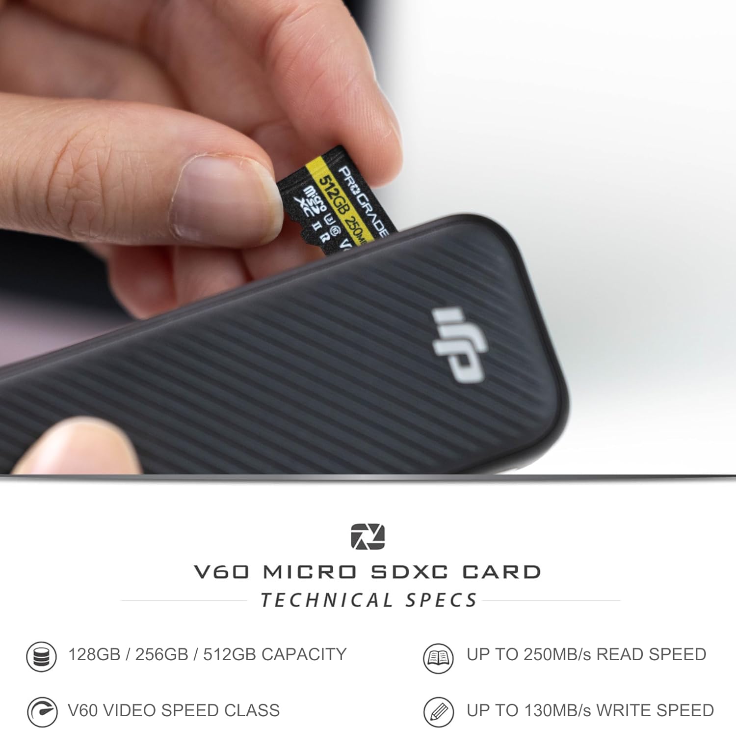 ProGrade Digital разработи microSDXC, UHS-II карти памет за употреба в обикновени аеро и екшън камери. Картите са тествани като SD карта с пълен размер и могат да се използват в DSLR и безогледални устройства. Те също така предлагат UHS-I DDR-104 и U3 клас на скорост, осигурявайки максимална съвместимост във всички приложения, от единични кадри до 4K видео с висока резолюция. Капацитетите варират от 64GB до 256GB, а нивата на производителност осигуряват скорости на четене на данни до 250MB/сек, идеални за бързо зареждане на голямо количество съдържание от картата към работната станция.