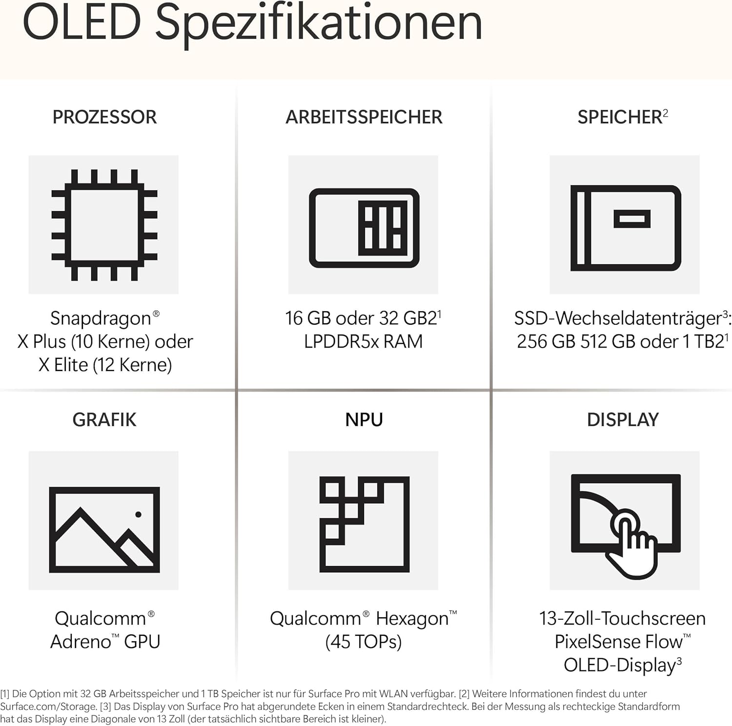 Microsoft Surface Pro | Copilot+ PC | 13" OLED сензорен екран | Snapdragon® X Elite (12 ядра) | 16GB RAM | 512GB SSD | Най-нов модел, 11-то издание | Черен