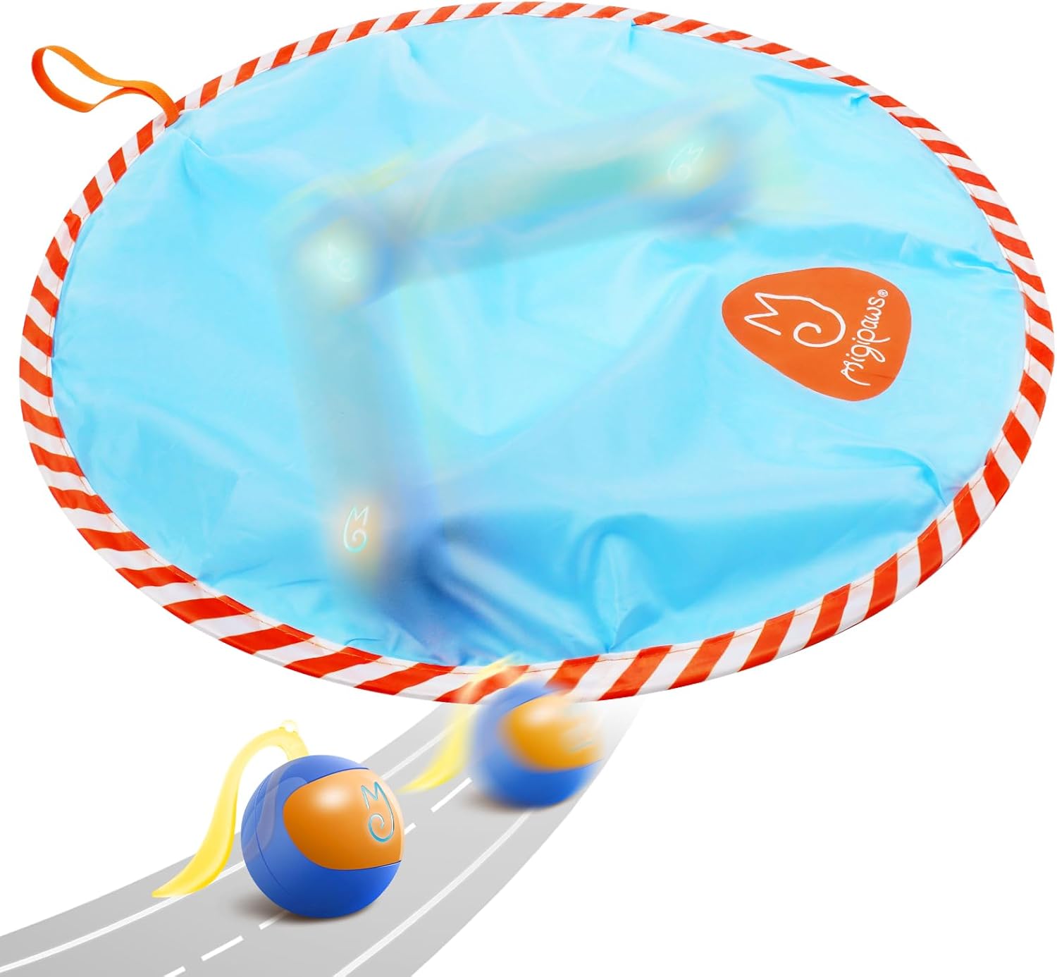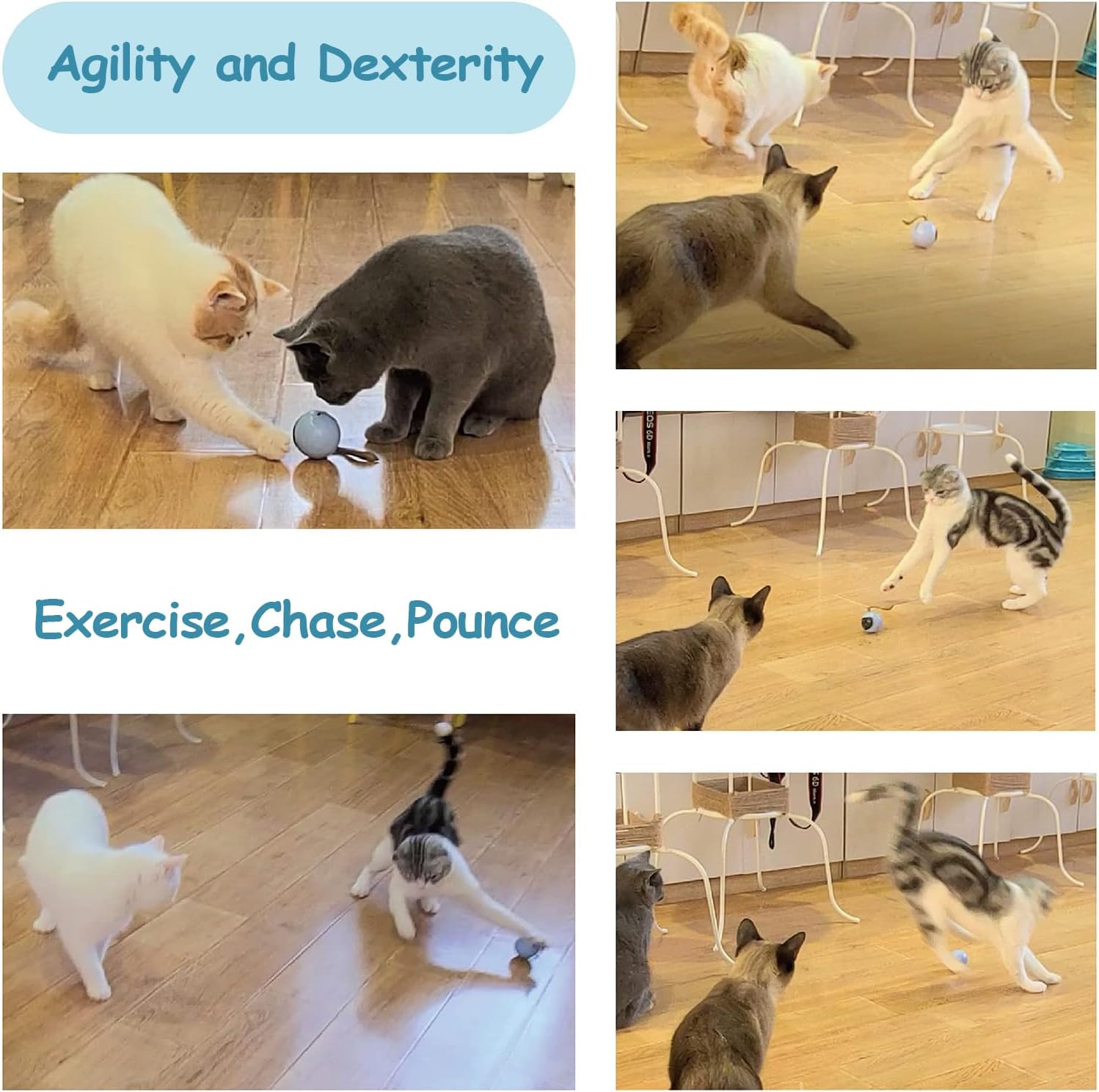 Migipaws Котешка футболна топка -- Плюшени мишки и пера като допълнителна играчка. Страхотната интерактивна и атрактивна играчка за вашите котки. Проектирана и разработена от екипи на MigipawsRD с десетилетия опит в индустрията за играчки за домашни любимци, използващи иновативен дизайн в тази интелигентна интерактивна играчка за котки с топка „Направи си сам“, комбинация от класическа играчка за котки.