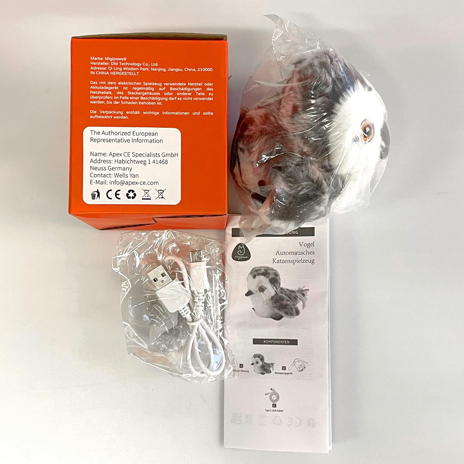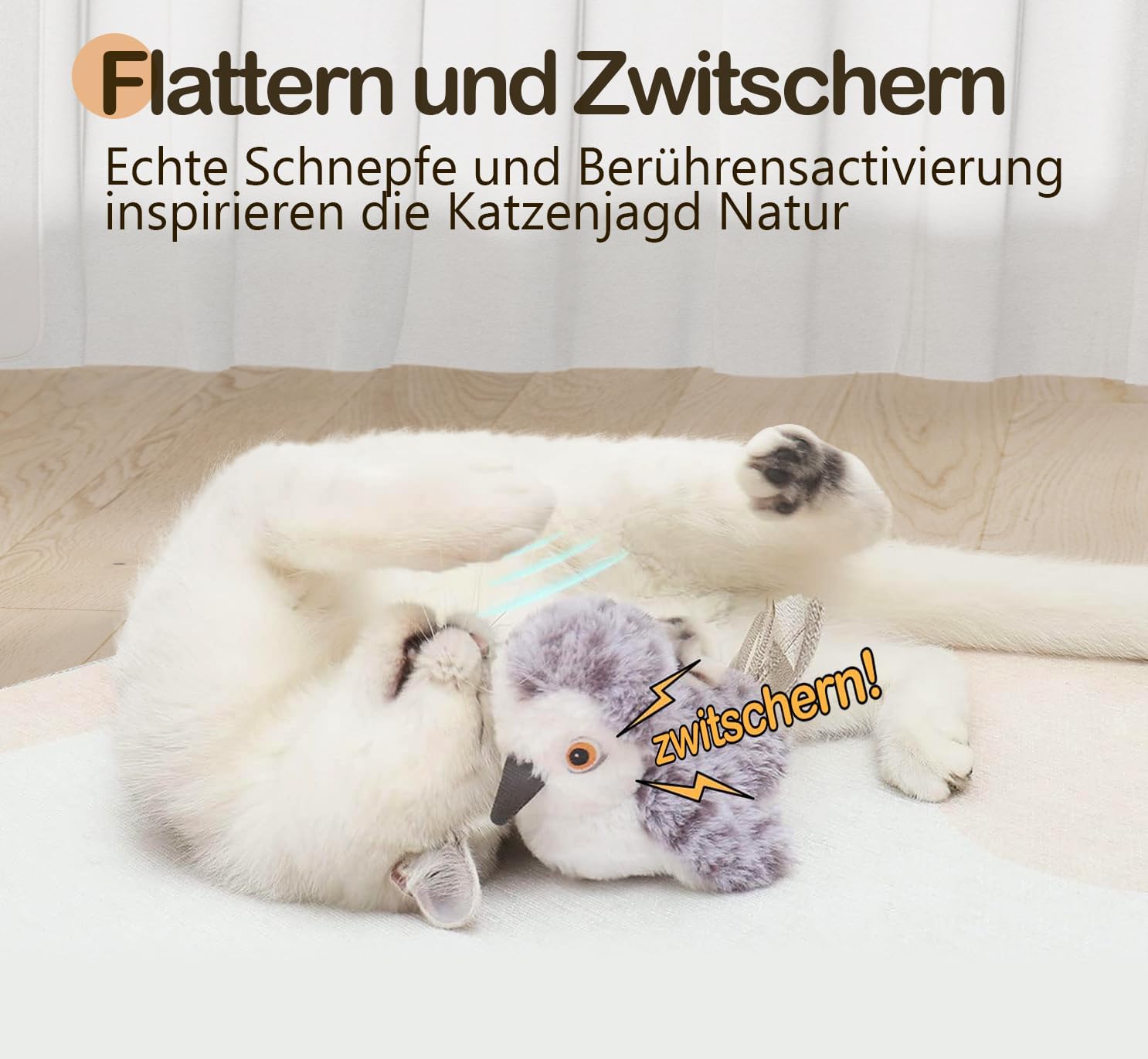 Migipaws Котешка играчка Flutter Bird Реалистична бекасинка Чуруликаща играчка с докосване за котки Интерактивна електрическа котешка играчка с котешка трева Презареждаща се