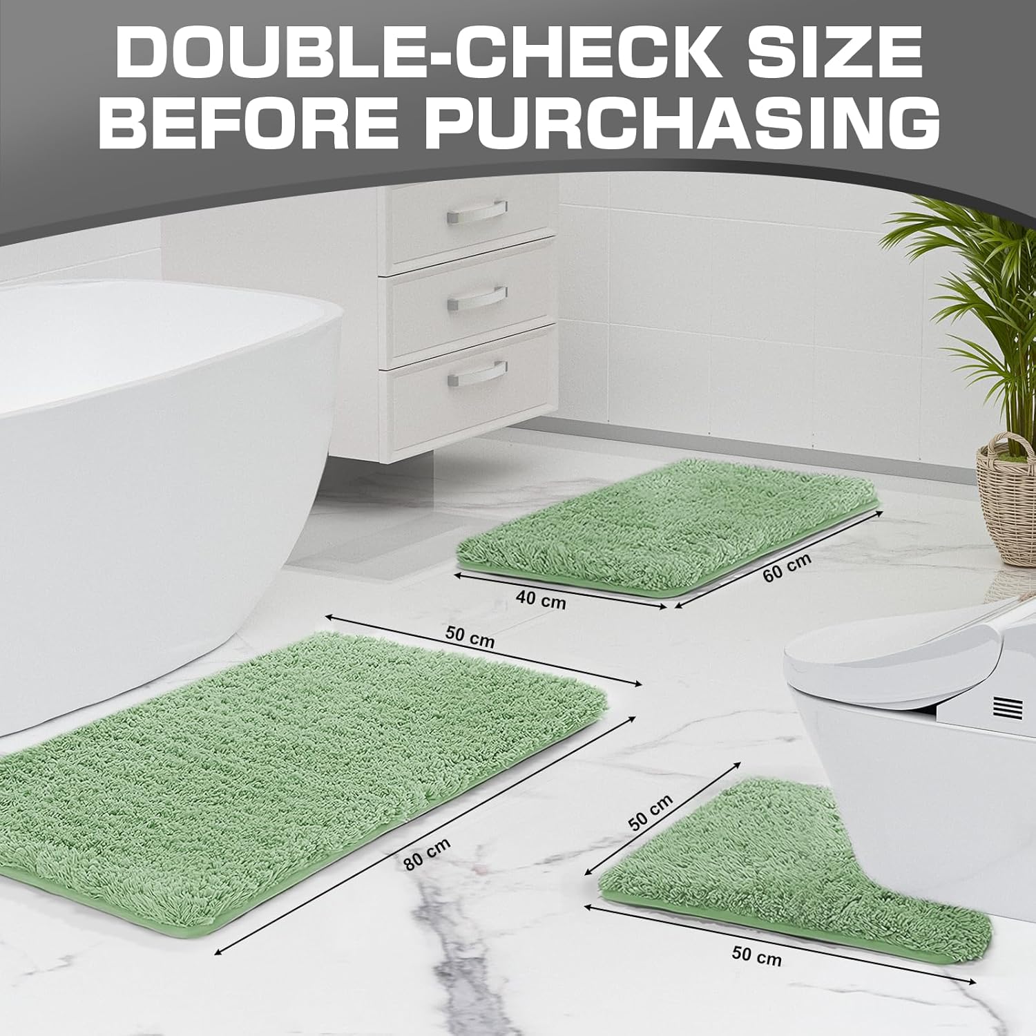 Микрофибърни килими за баня wyewye 2 см супер дебели килими за баня супер абсорбиращи постелки за баня 50x80 см и 50x50 см U-образни светлозелени