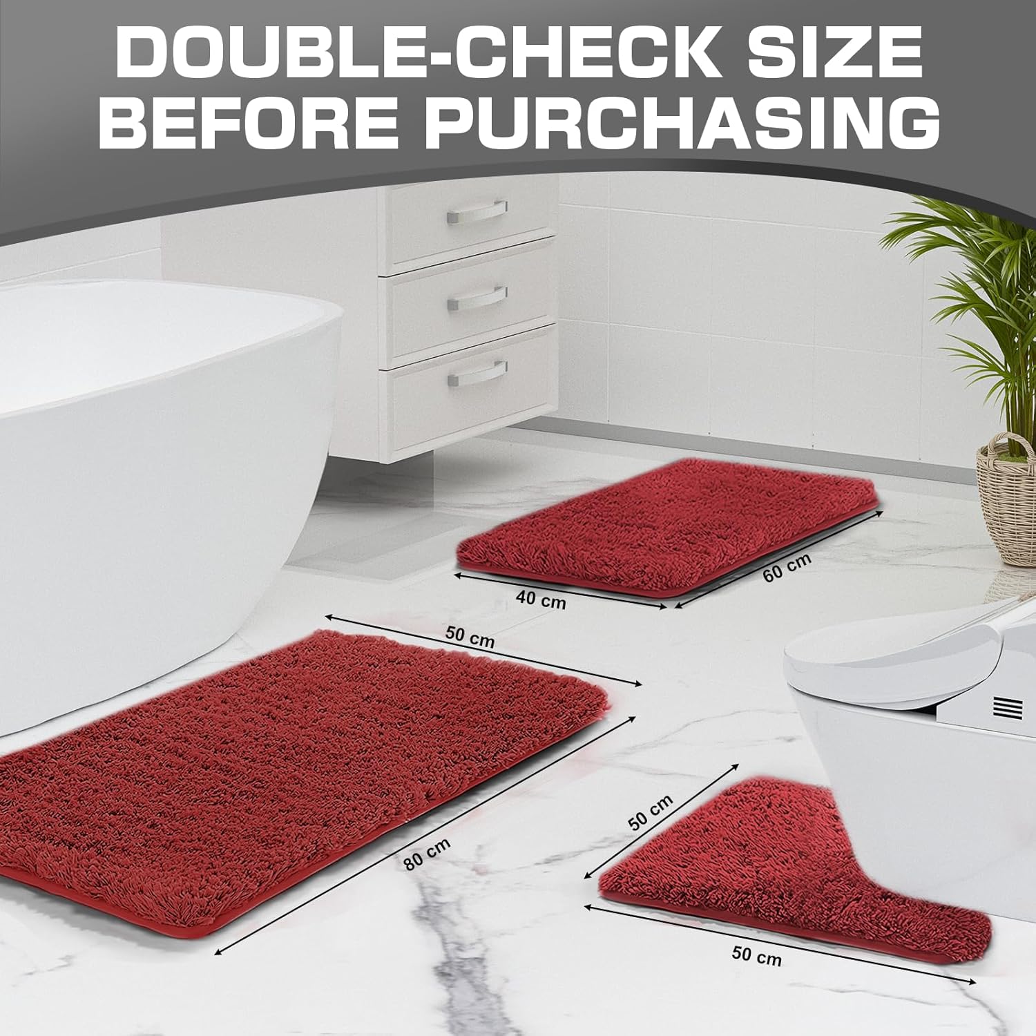 Микрофибърни килими за баня wyewye 2 см, супер дебели, супер абсорбиращи, 50x80 см и 40x60 см, червени