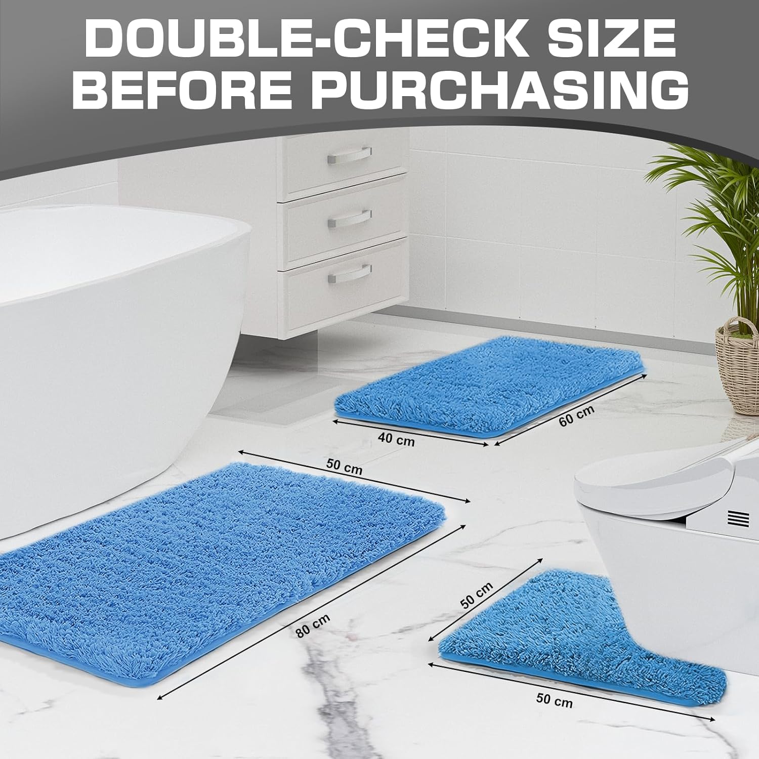Микрофибърни килими за баня wyewye 2 см, супер дебели, супер абсорбиращи, 50x80 см и 40x60 см, сини