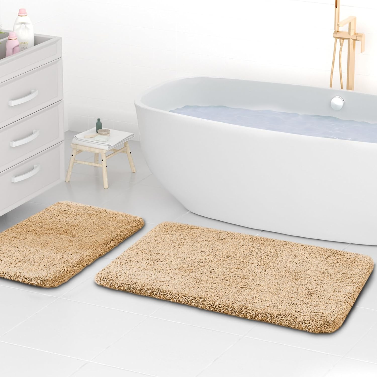 Микрофибърни килими за баня wyewye 2 см, супер дебели, супер абсорбиращи, 50x80 см и 40x60 см, светло сиви