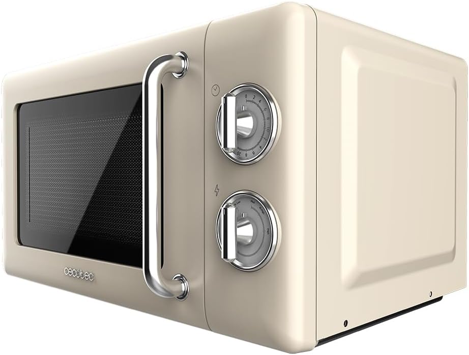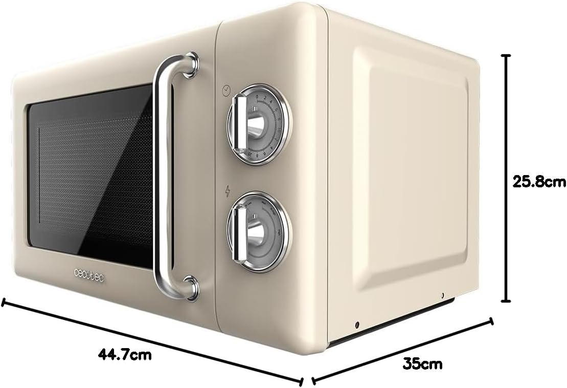 Микровълнова фурна Cecotec Proclean 3010, 20 л, ретро бежово, 700 W, 6 нива на мощност, таймер до 30 минути, режим на размразяване, винтидж дизайн в бежово, стоманено покритие