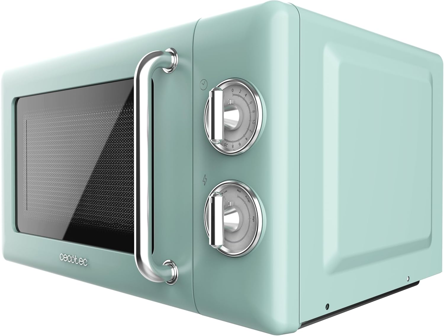 Микровълнова фурна Cecotec Proclean 3010 Retro Green, механична, 20 л, 700 W, 6 нива, таймер до 30 минути, режим на размразяване, винтидж зелен дизайн, стоманено покритие