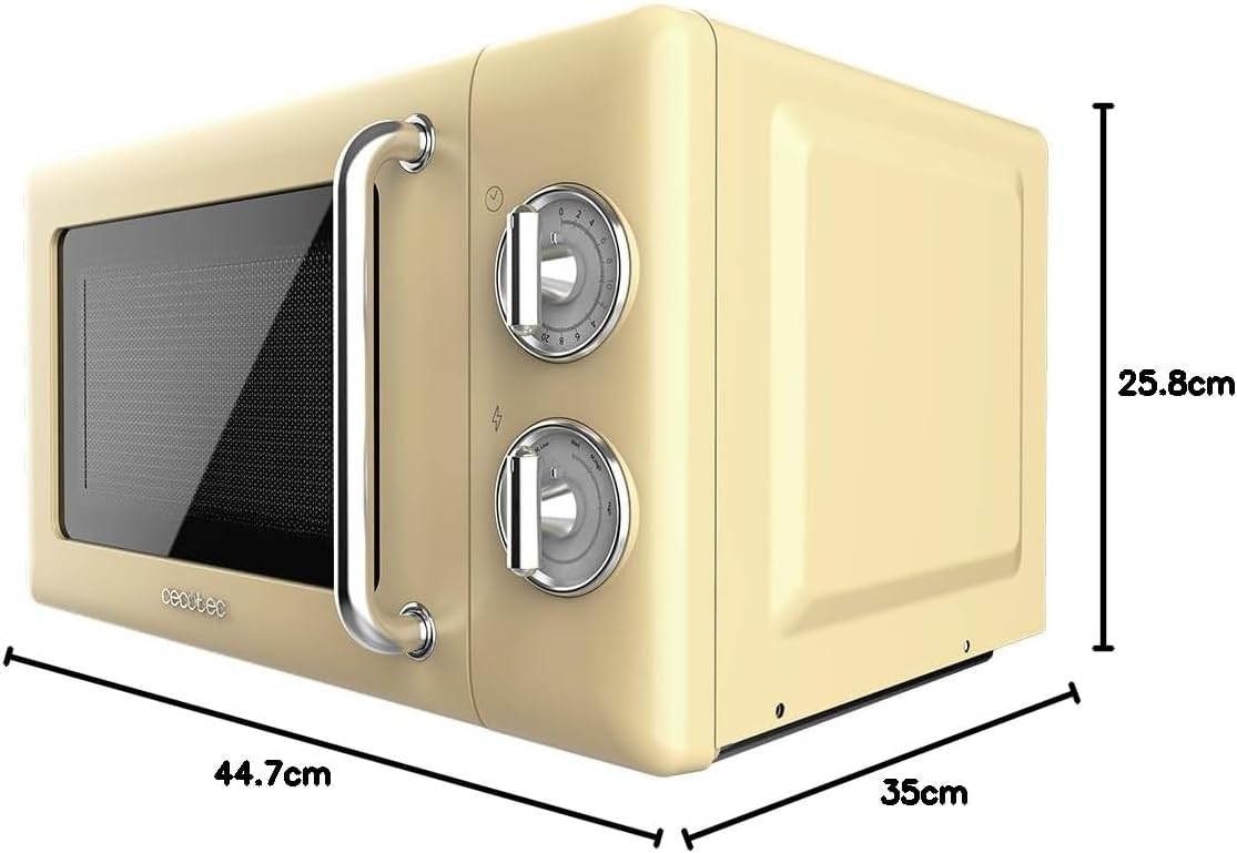 Микровълнова фурна Cecotec Proclean 3010 Retro Yellow, механична, 20 л, 700 W, 6 нива, таймер до 30 минути, режим на размразяване, винтидж дизайн, жълто стоманено покритие