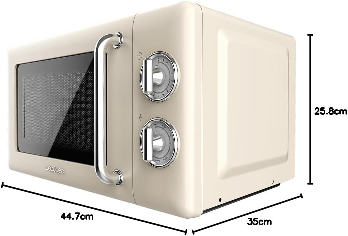 Микровълнова фурна Cecotec Proclean 3110 Retro Beige с грил, 700 W на 6 нива, таймер до 30 минути, режим на размразяване, винтидж дизайн в бежово, стоманено покритие