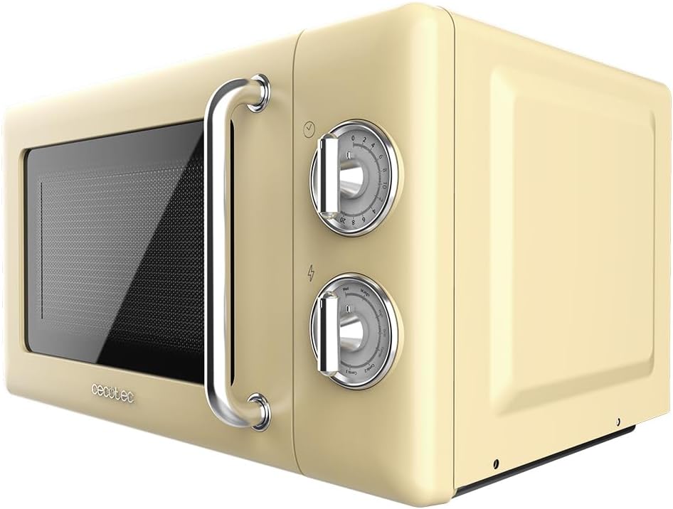Микровълнова фурна Cecotec Proclean 3110 Retro Yellow с грил, 700 W, 6 нива, таймер до 30 минути, режим на размразяване, винтидж дизайн в жълто, стоманено покритие